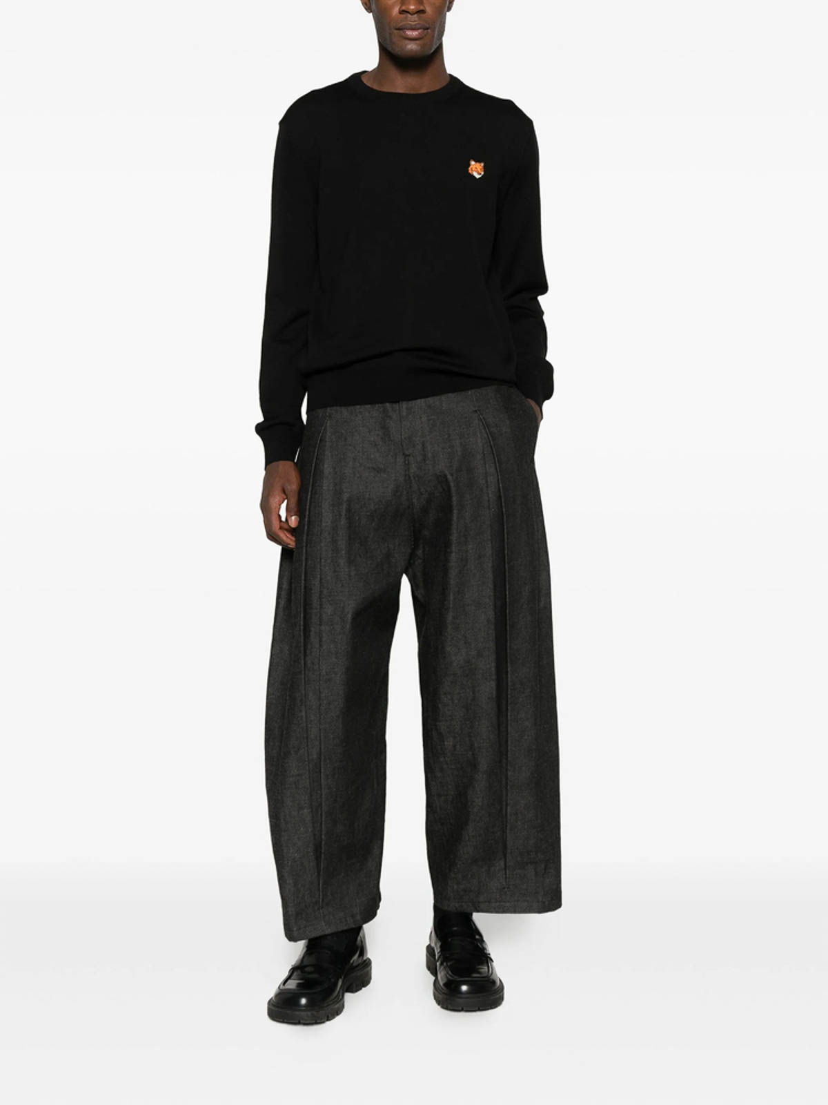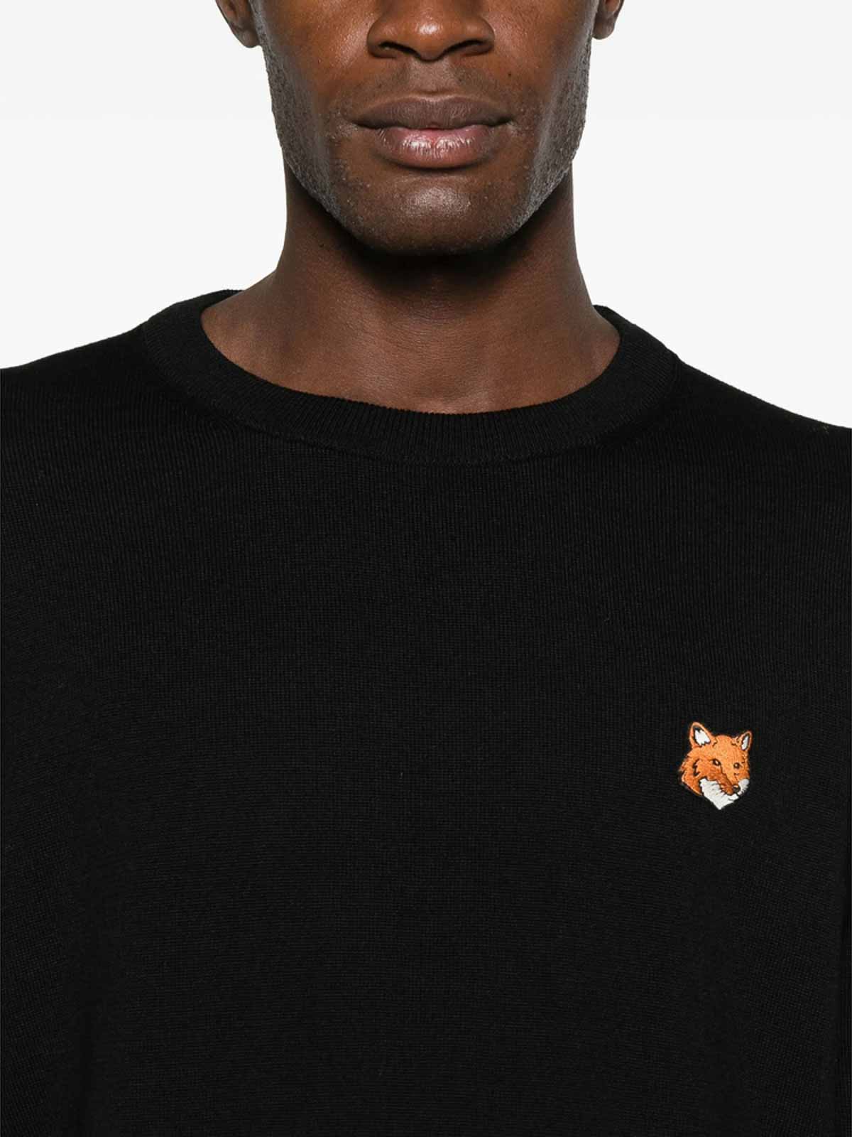 ブラック、ウール、シグネチャーフォックスヘッドディテール、クルーネック、ロングスリーブ、リブ編みの袖口と裾