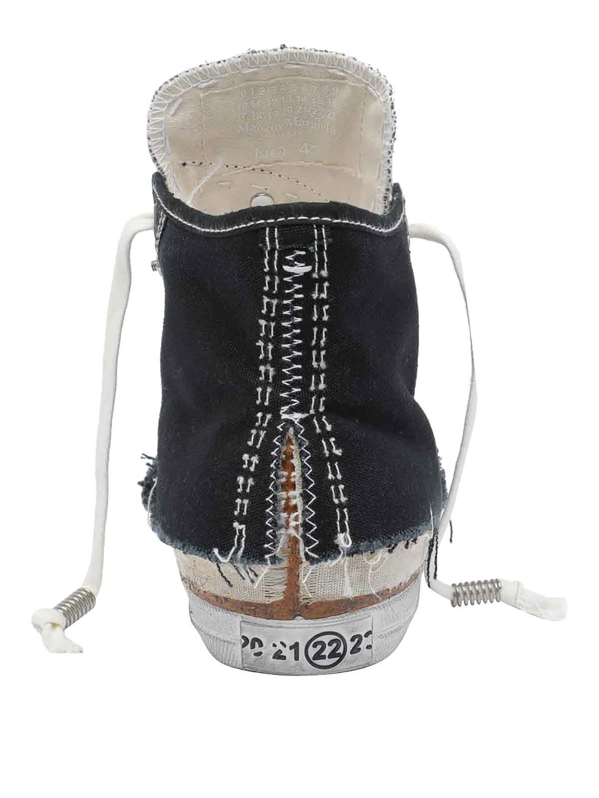 Maison magiela ブラックスニーカー、レースクロージャー、ラウンドトウ、ダメージ加工&ユーズドエフェクト、ラウンドトウ、レースクロージャー