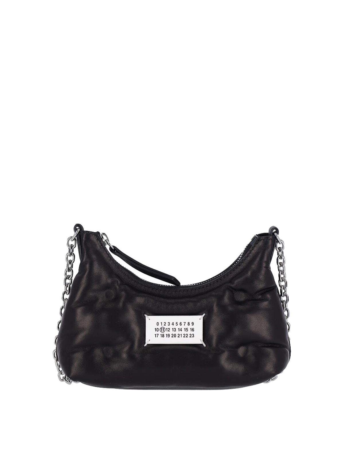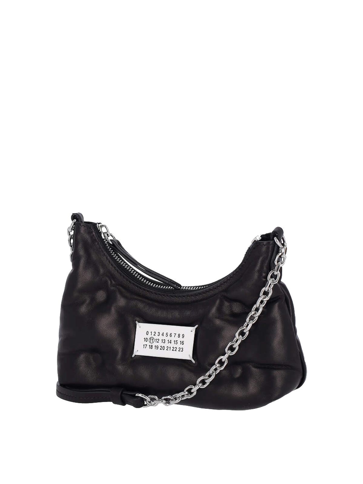 グラムスラムホーボーマイクロレザーバッグ、フロントロゴチェーン、ジッパー付き