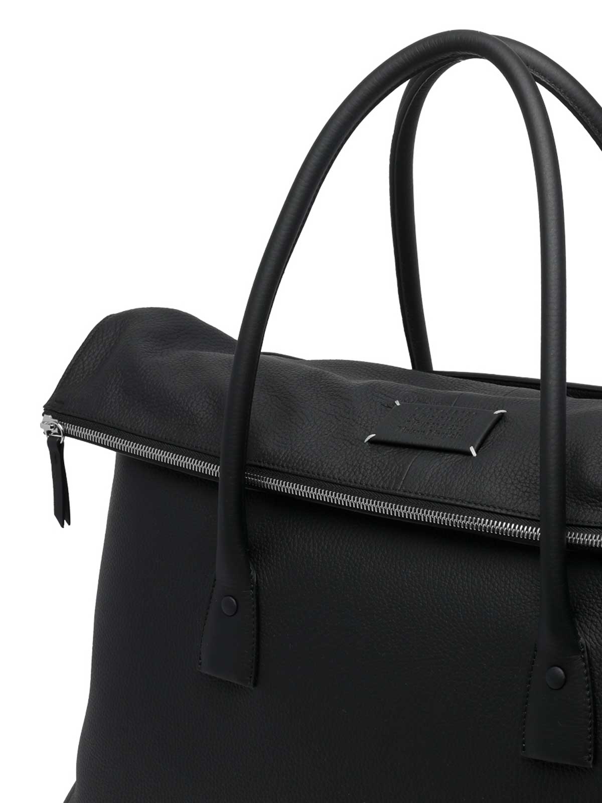 Maison margiela ブラック 5ac ショルダーバッグ、ファスナー開閉、ファスナー付き内ポケット、オープンポケット、ノートパソコン用クリップポケット、ハンドル2本、調節・取り外し可能なショルダーストラップ