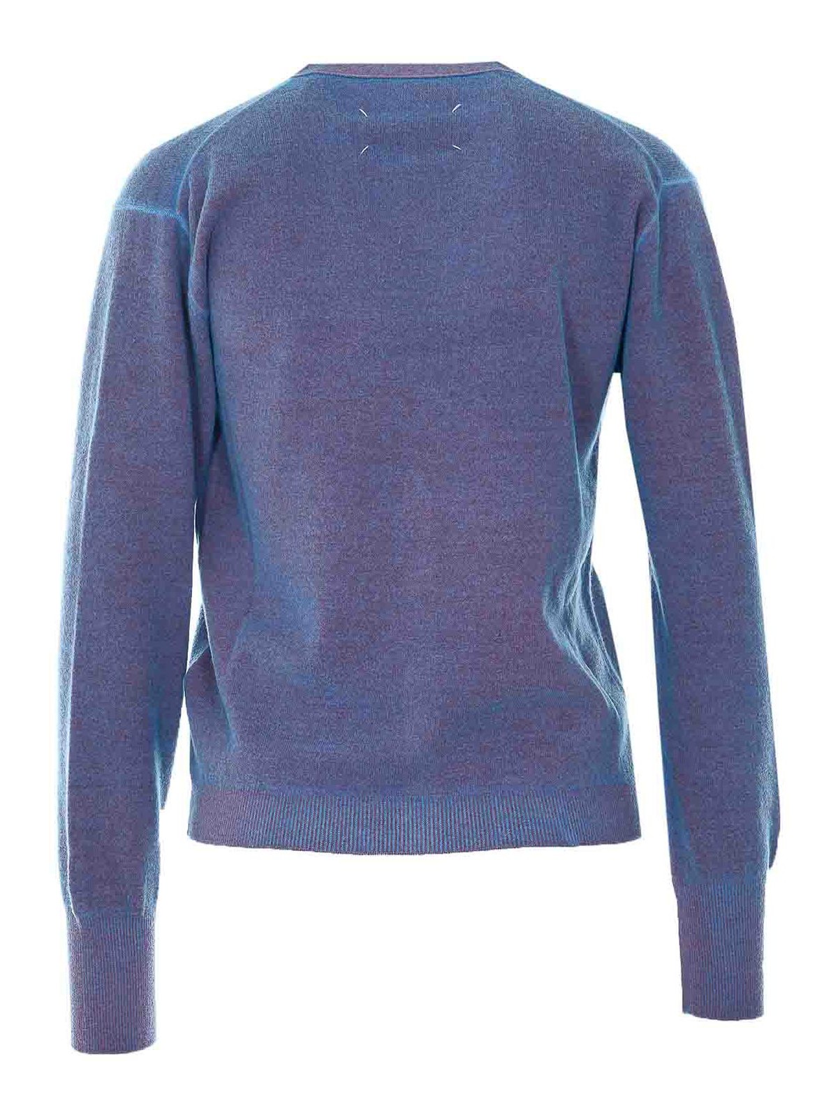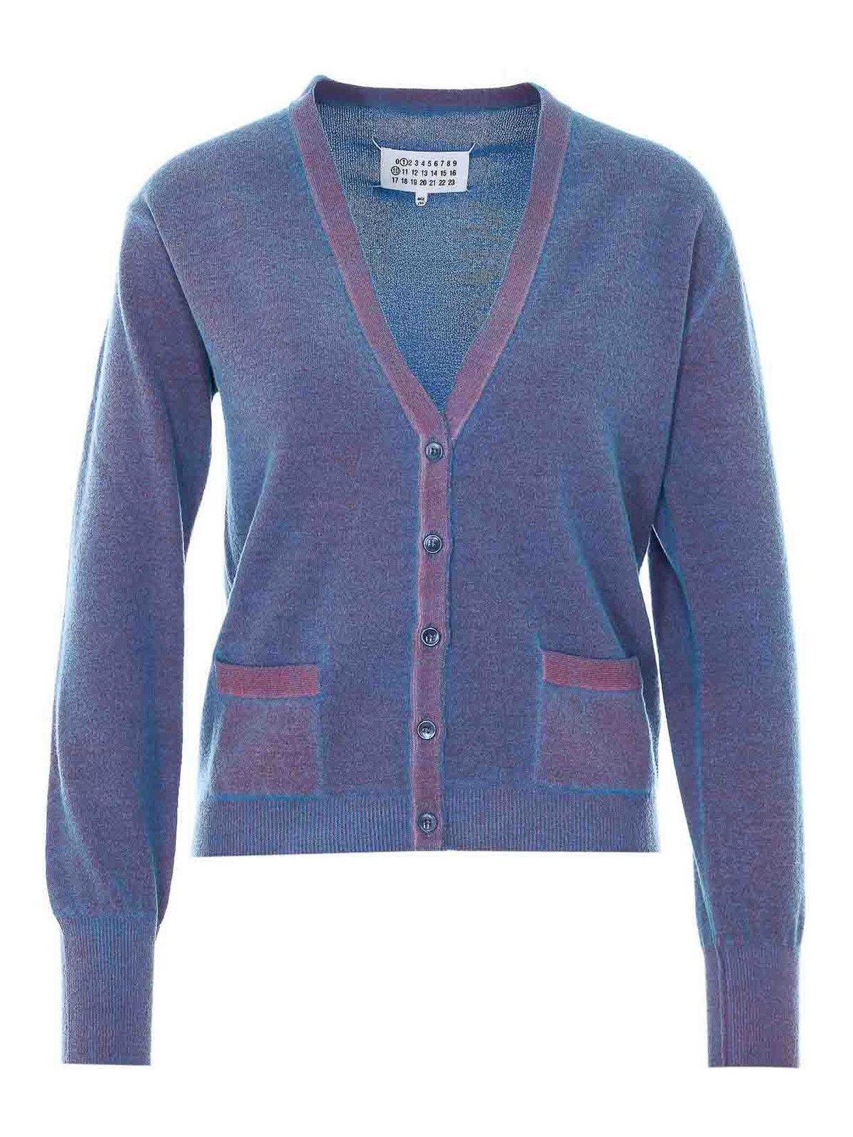 メゾンマルジェラブルーカーディガン、ボタンクロージャー、Vネック、ロングスリーブ、ポケット