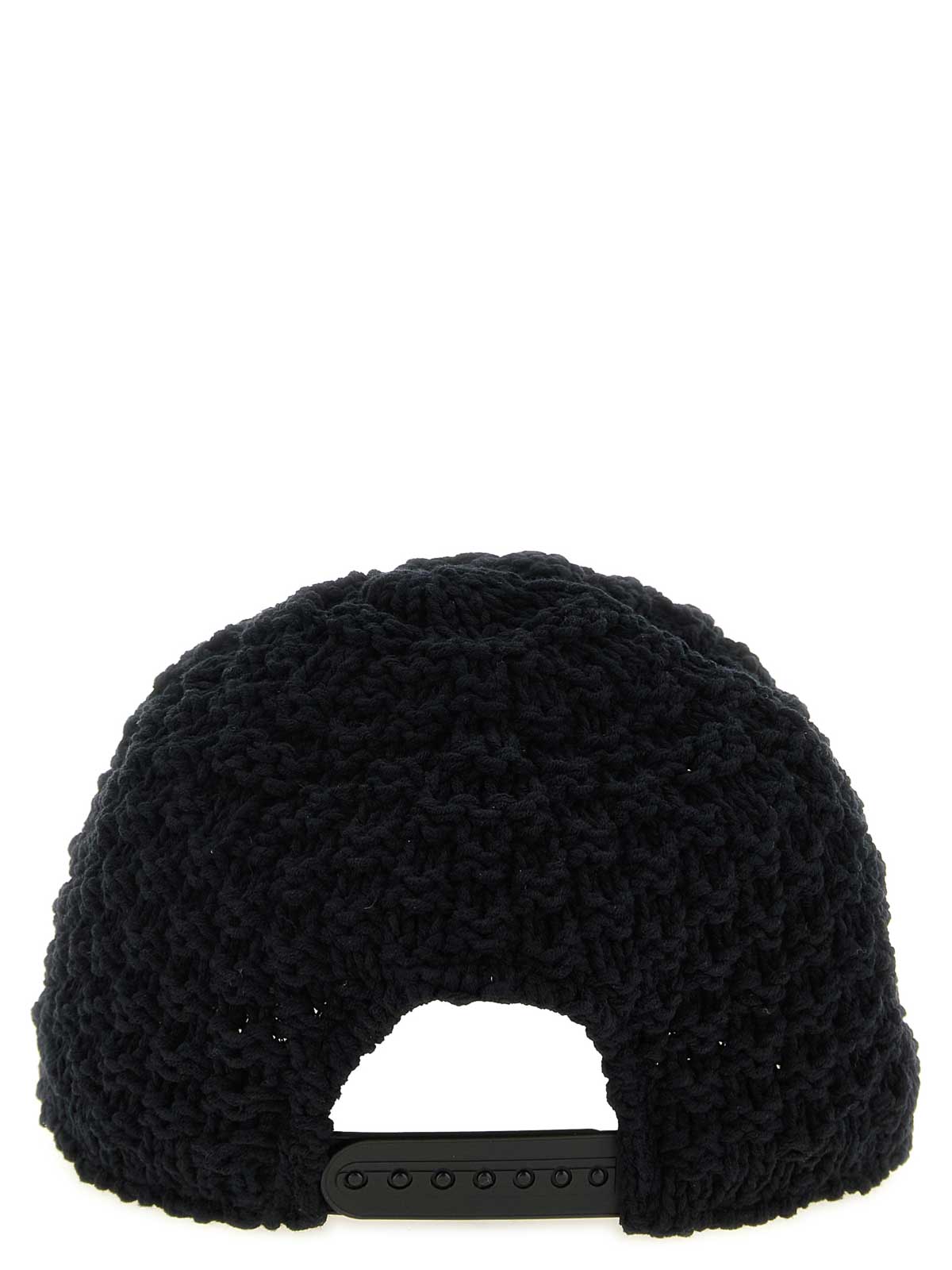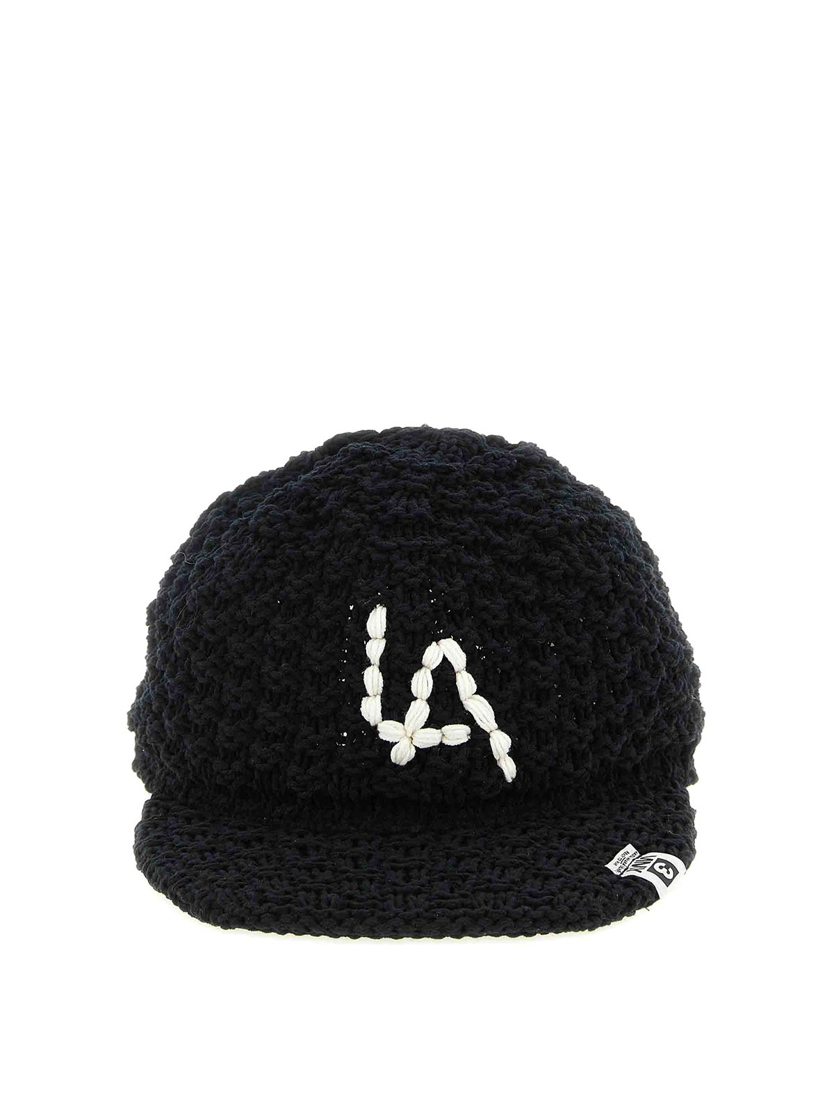 ベースボールデザインのLa knit'コットン混紡キャップ、前面にロゴ刺繍、後ろに調節可能なストラップ付き。