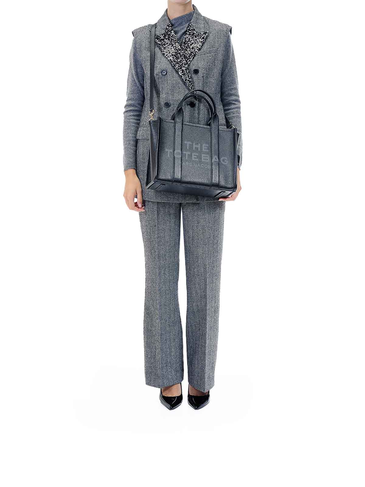 ブラックのミディアムレザートートバッグ。上質なレザーで作られたアイコニックなスモールトートバッグで、前面に対照的なトートバッグのプリントが施されています。手で持ち運べる2つの硬いトップハンドルと、クロスボディまたはショルダーバッグとして着用できる取り外し可能で調節可能な布製ショルダーストラップが特徴です。上部のファスナー開閉部と内側にはスリップポケットとカードスロットがあり、どんなシーンにもぴったりのバッグです。前面にプリントされたトートバッグのグラフィック、ダブルリジッドハンドル、調節可能で取り外し可能なコントラストの効いたショルダーストラップ、背面に刺繍入りロゴラベル、内側にはスリップポケットとカードスロット、上部にファスナー開閉、保護用ダストバッグが付いています。色:黒、100%カーフスキン、34 x 27 x 15 cm、13 x 11 x 6インチ、ハンドル:12 cm/5インチ、ショルダーストラップ:144 cm/56.7インチ。