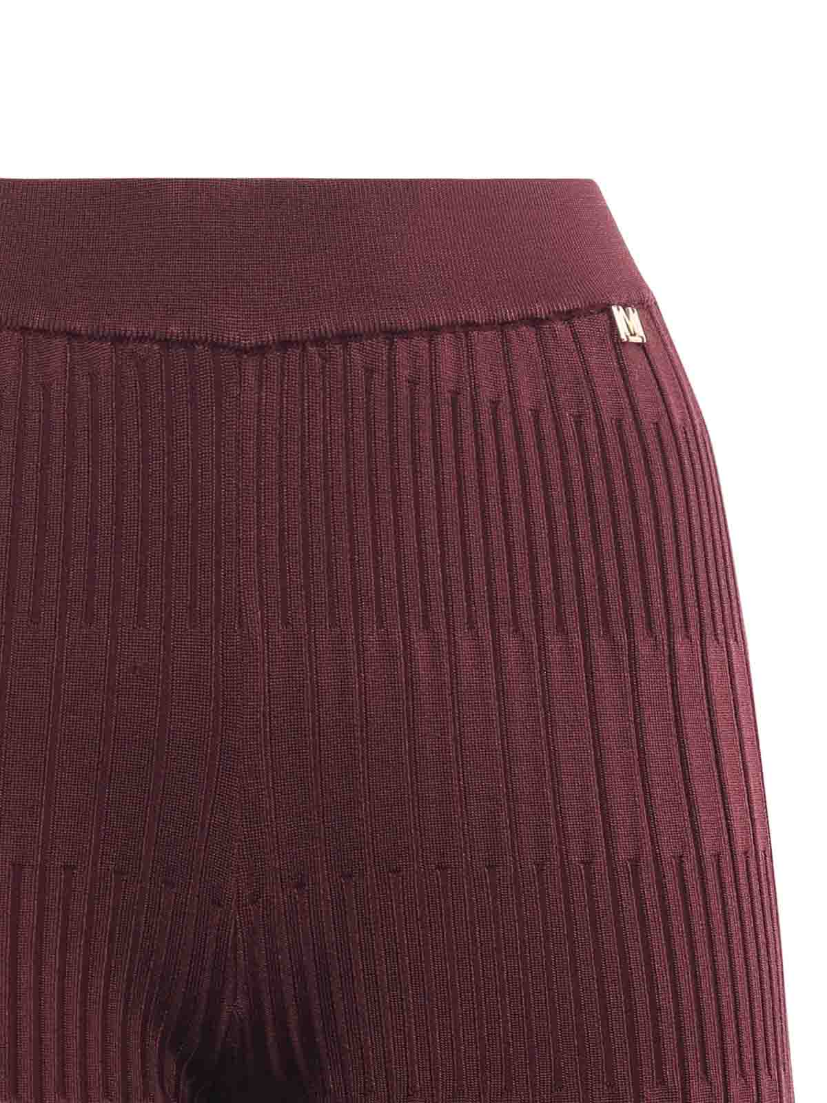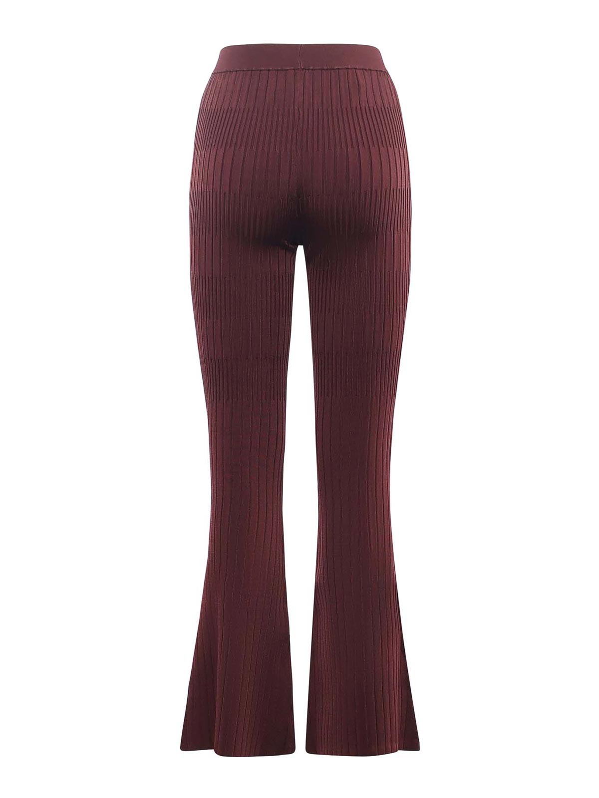 ストレッチビスコース混紡ニット、ハイウエスト、フレアレッグ、写真のサイズはXS、色:ボルドー