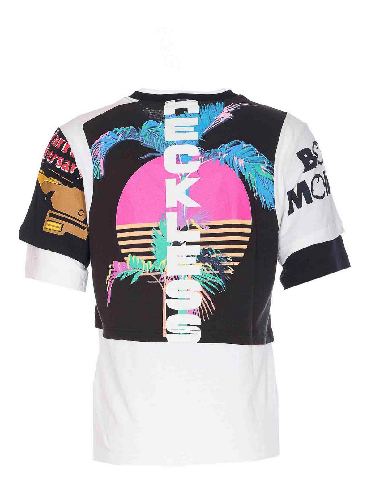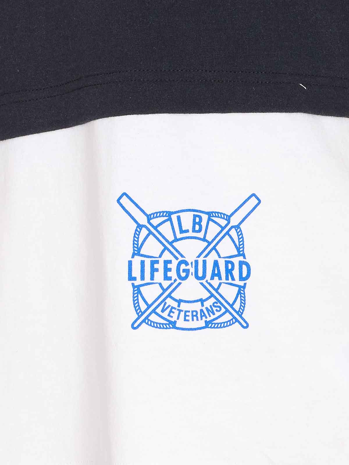 マリンセールレイヤードTシャツ、オールオーバープリントディテール、クルーネック
