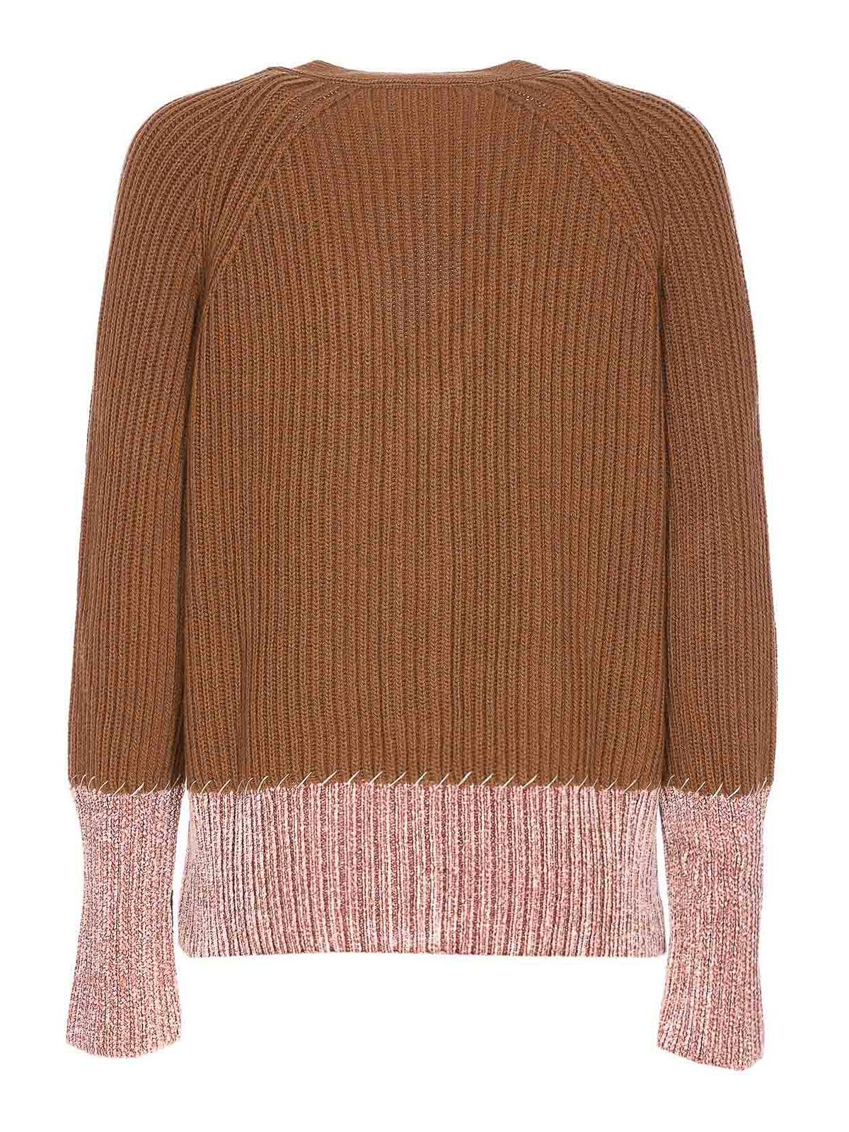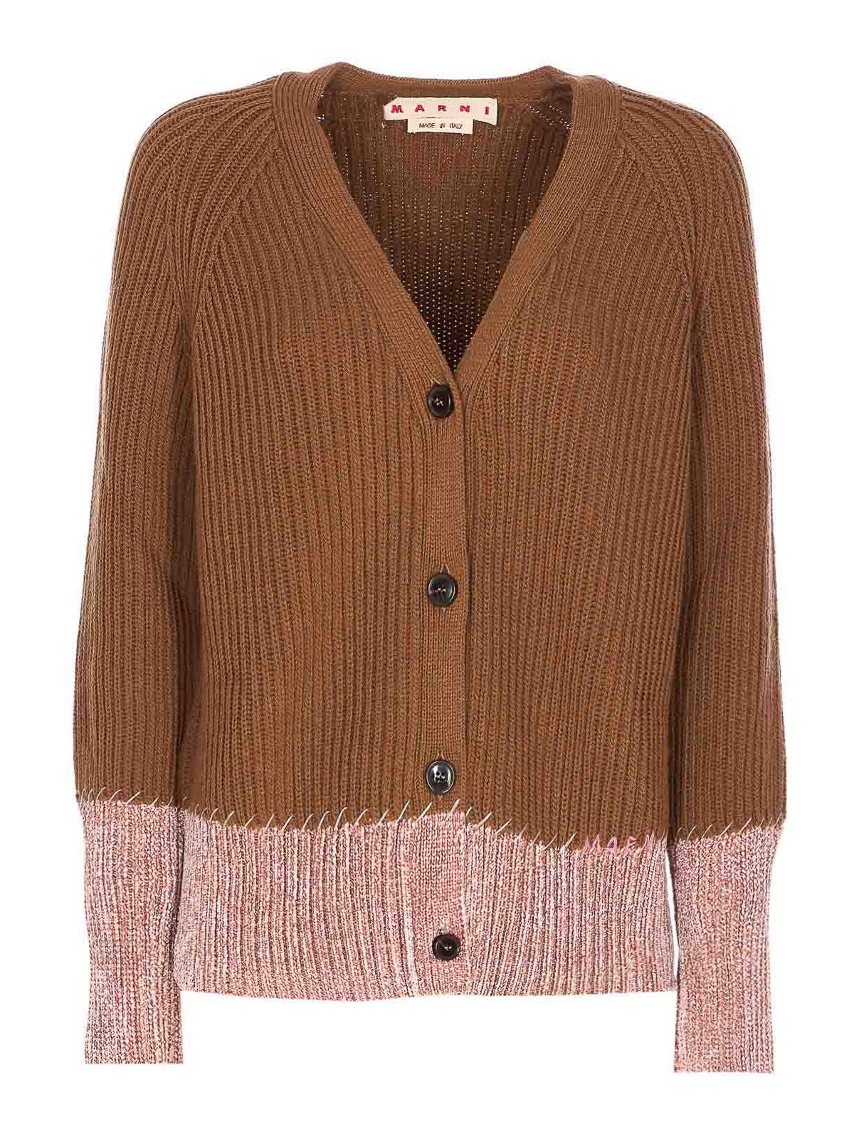 Marni ベージュフロントボタン付きニットカーディガン Vネックロングスリーブデザイナーカラー名:ブラウン