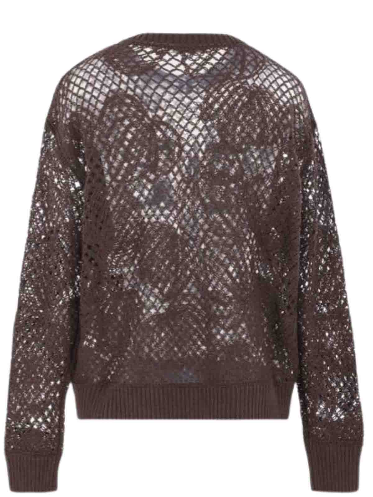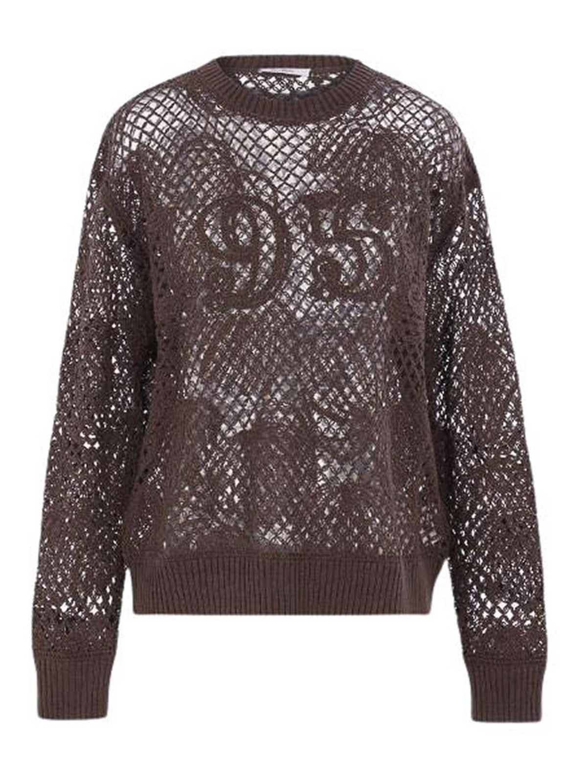 コーネリーリーフをあしらったネットステッチとアイコニックなロゴが特徴のコットン糸のタンクルーネックセーター。長袖でドロップショルダーとリブ編みのエッジが特徴です。
