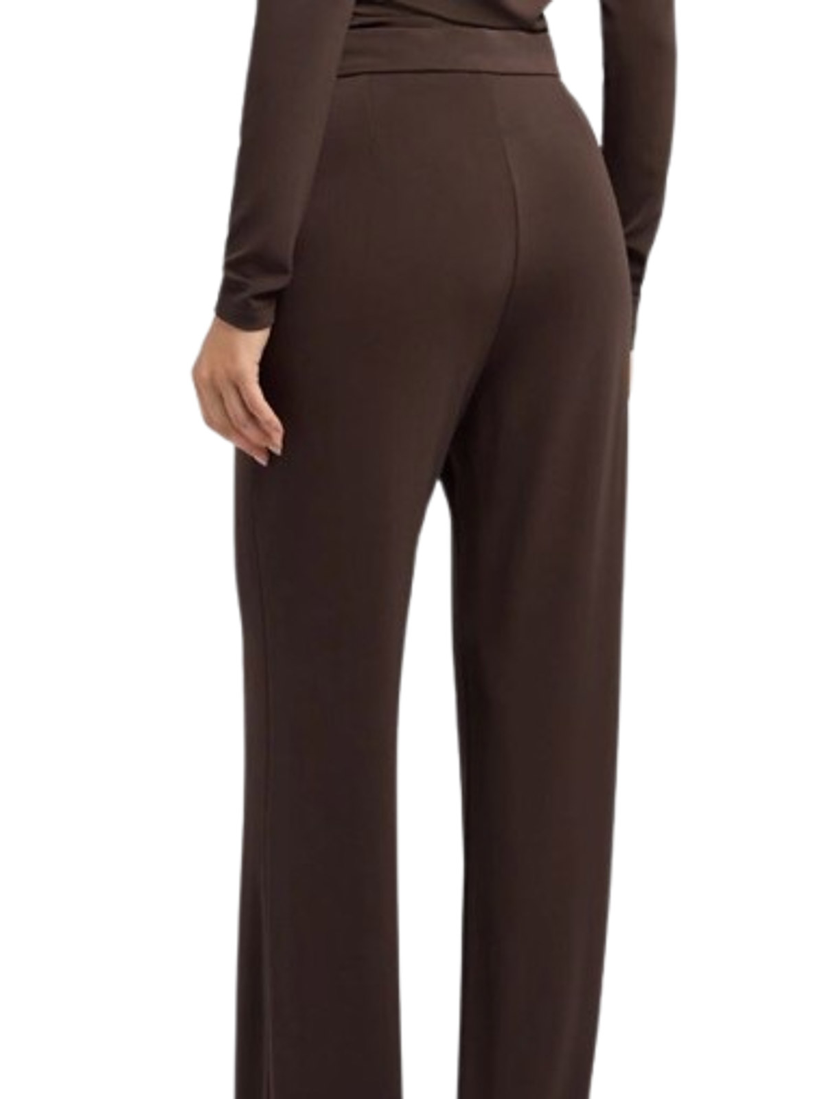 前面にプリーツが入ったカフェワイドレッグジャージークレープパンツ。ウェルトポケット。