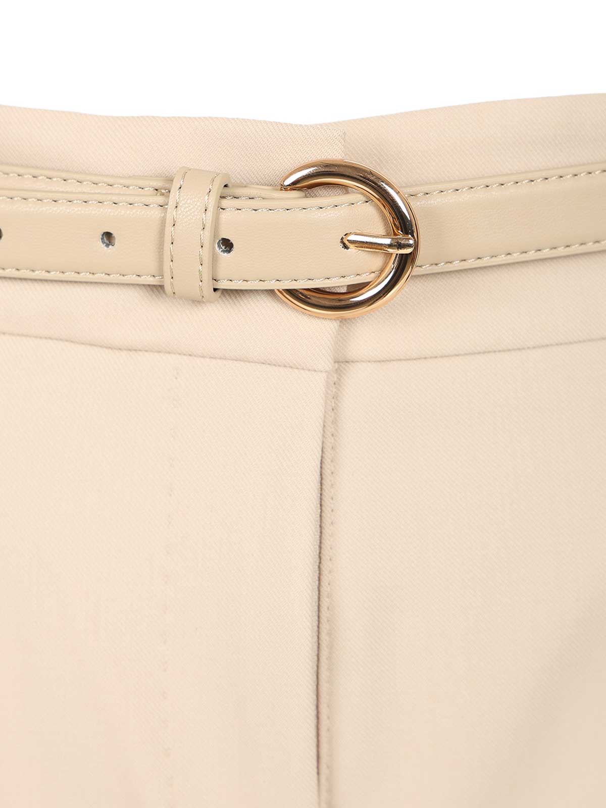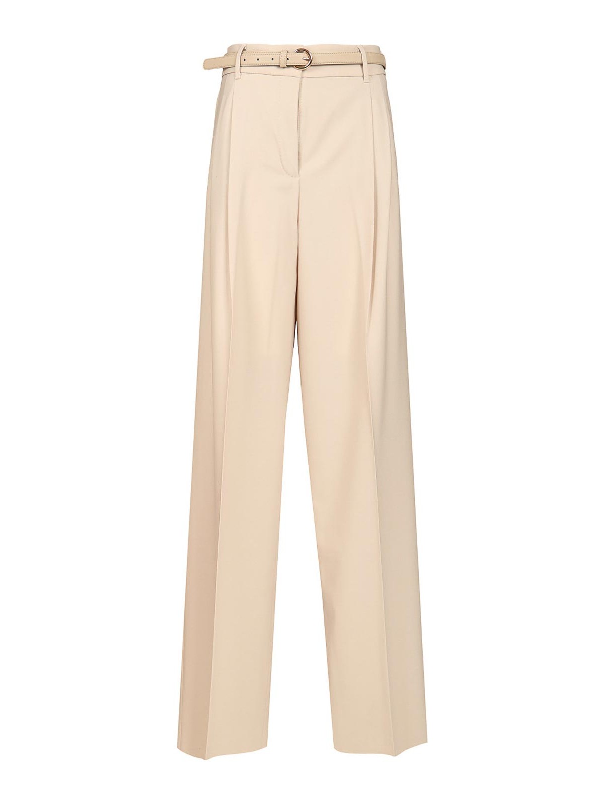 max mara studioのウールツイルパンツ。流れるようなラインとワイドレッグ、ボトムがやや先細り、ハイウエストバンド留め、フラップとフック付きのジッパー、サイドにフレンチポケット、お揃いのコーティング生地のベルトが特徴