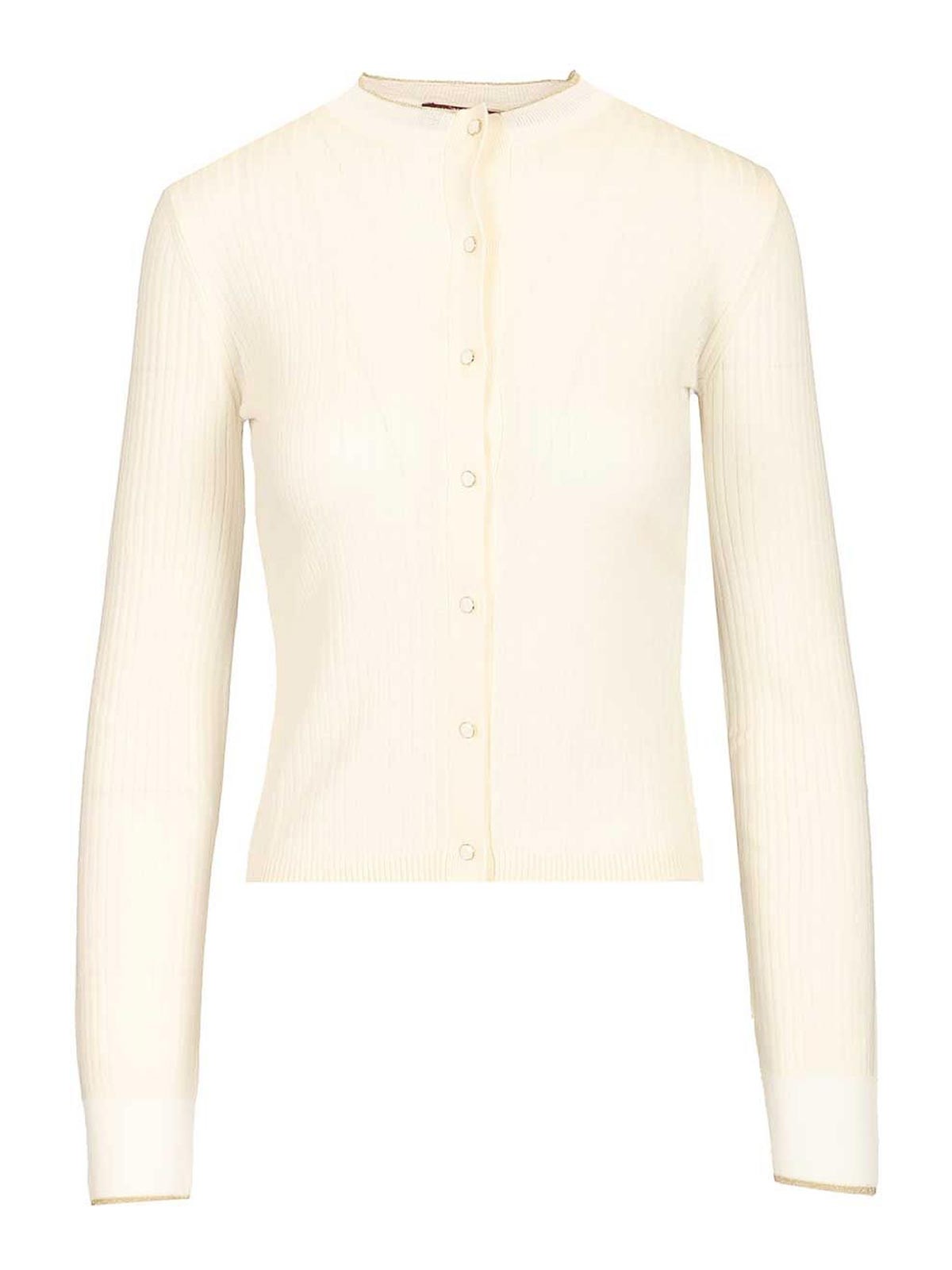 マックスマーラスタジオによるmstcrespoとニットのリブ編みカーディガン。小さな白いボタンとクルーネックが特徴です。