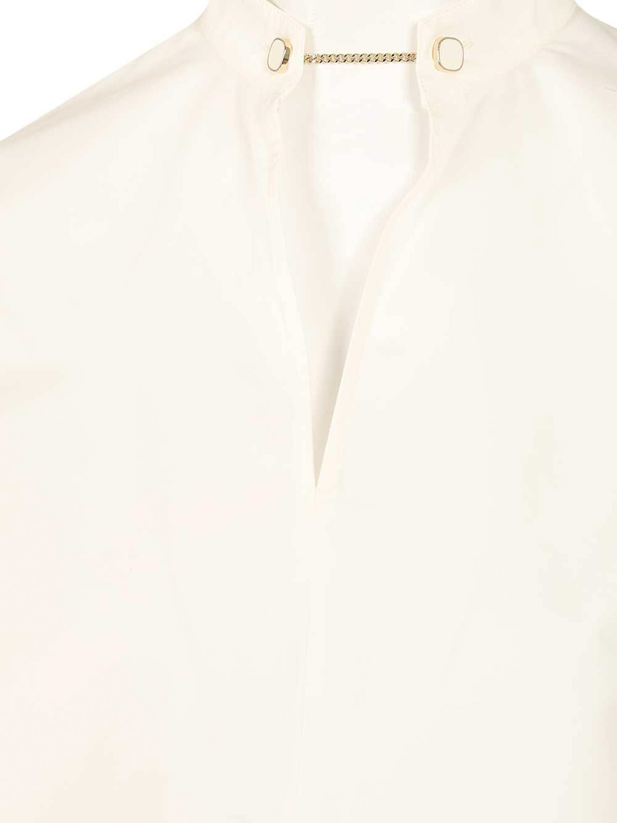 軽量ブラウス v ネック、マンダリンカラー、ジュエルカフ、ボタン付きワイドセット、バルーンスリーブカフス、ボタンホール付きカフス、ボタンラウンドサイドスリット、ストレートヘム