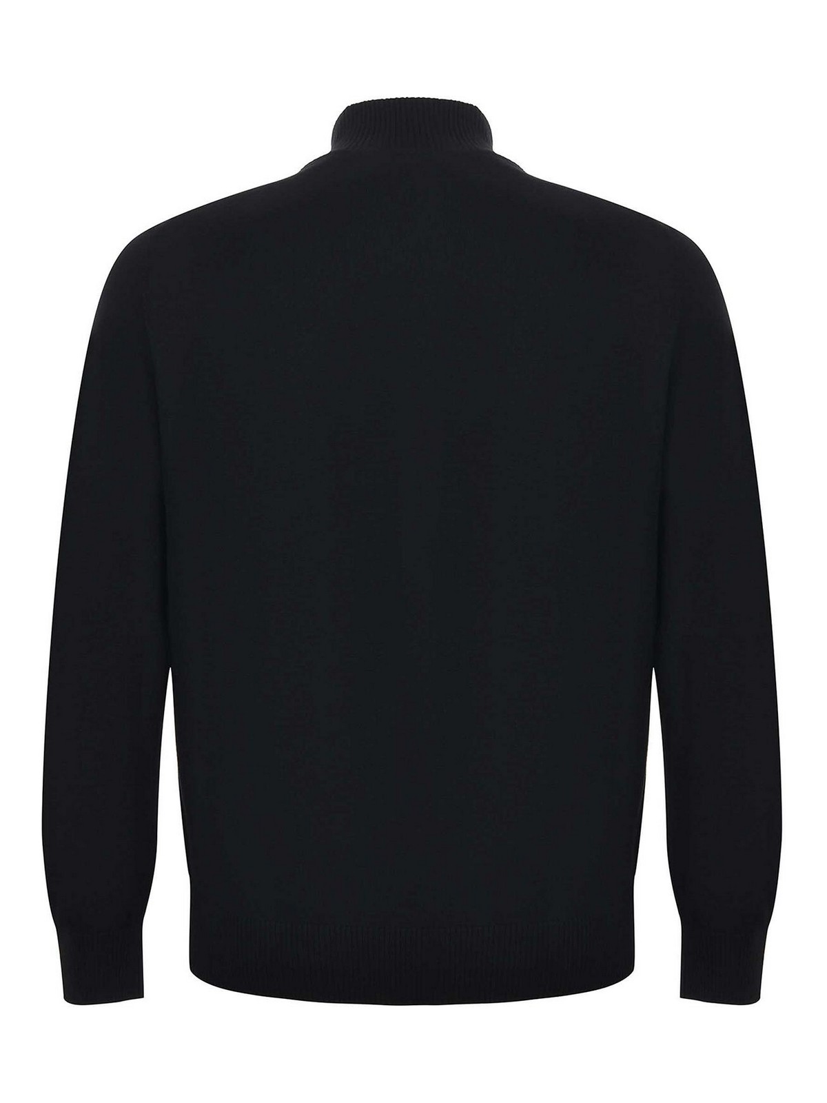 Mc2 Saint barth メリノウールのカーディガン、ブラック。ハイネック、長袖、ボタン留め。リブ編みの袖口と裾。左袖の底にトーン・オン・トーンのロゴ刺繍。表示サイズ:M 100% ウール