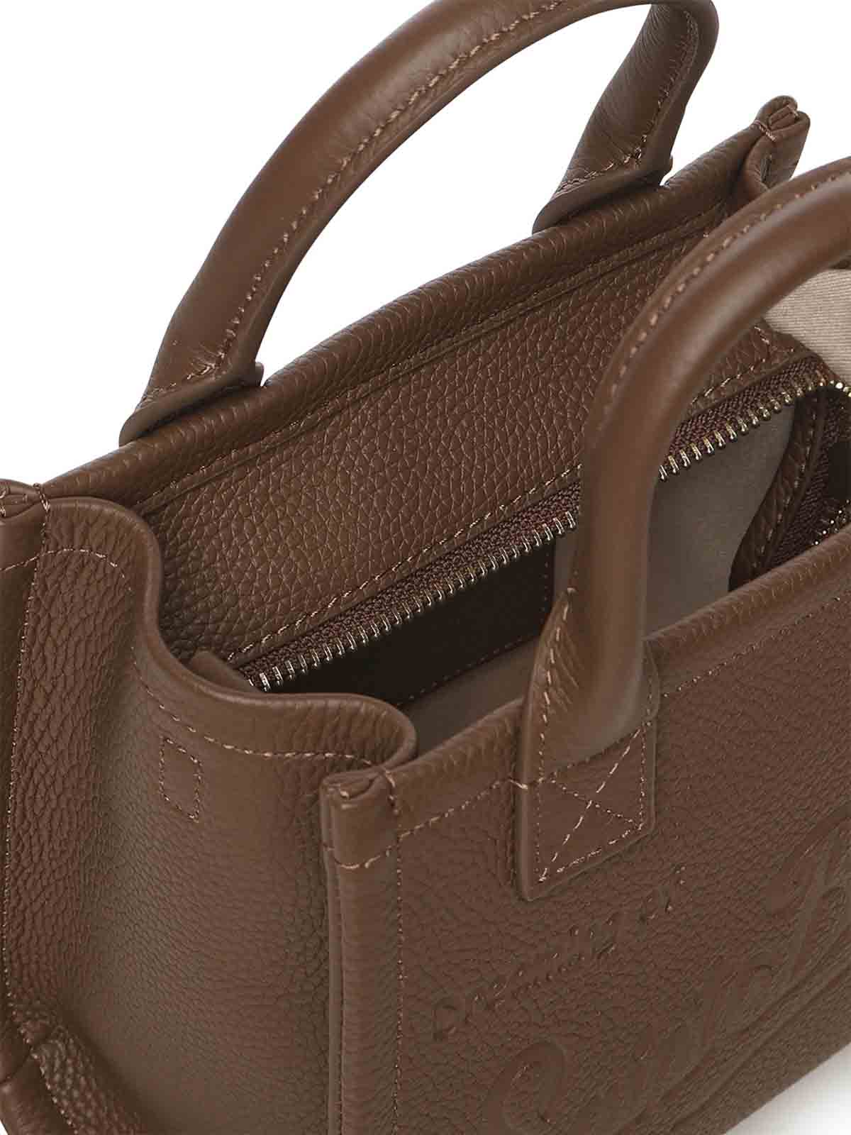 ハンマーレザー製、トップハンドル、取り外し可能で調節可能なショルダーストラップ、ヒートスタンプロゴ、内部ポケット2つ、寸法:18 x 16 x 10 cm、色:ブラウン