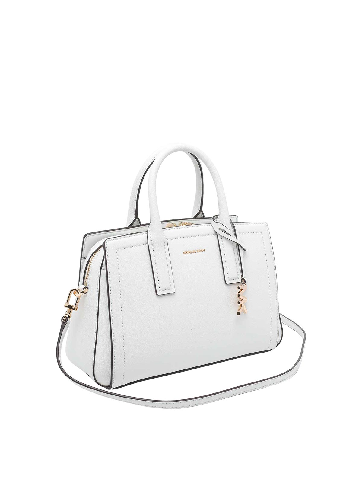 Michael Michael Kors ホワイトライラハンドバッグ、3セクション、ファスナー付きポケット、ハンドル2つ、調節可能で取り外し可能なストラップ、レザーモデル、ロゴチャーム