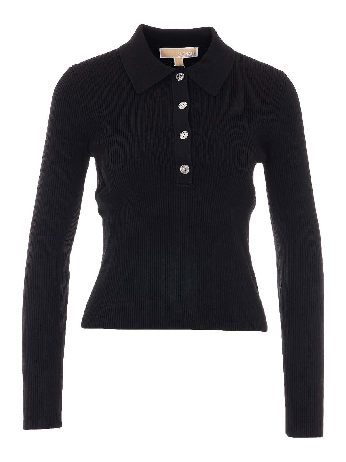 マイケル・マイケル・コースブラックプルオーバー、レギュラーカラー、ボタン留め、ロングスリーブ