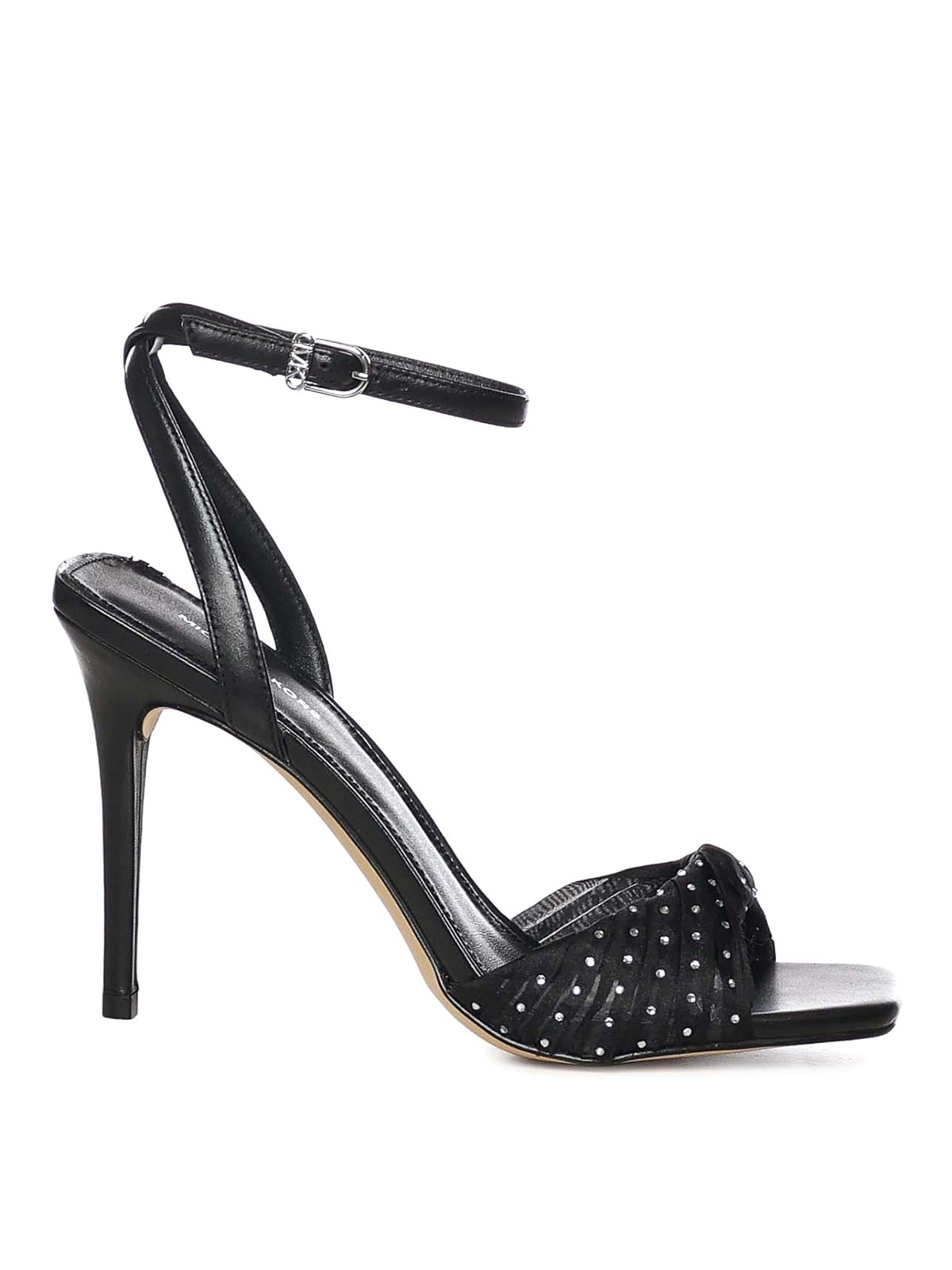 オープントゥ、バックルクロージャー、ラバーソール、ヒール11cm、カラー:ブラック