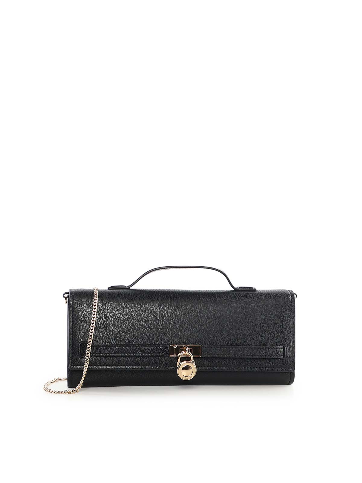 スナップクロージャー、バックジッパーポケット、チェーンショルダーストラップ、寸法:31.1 x 12.7 x 4.4 cm、色:黒