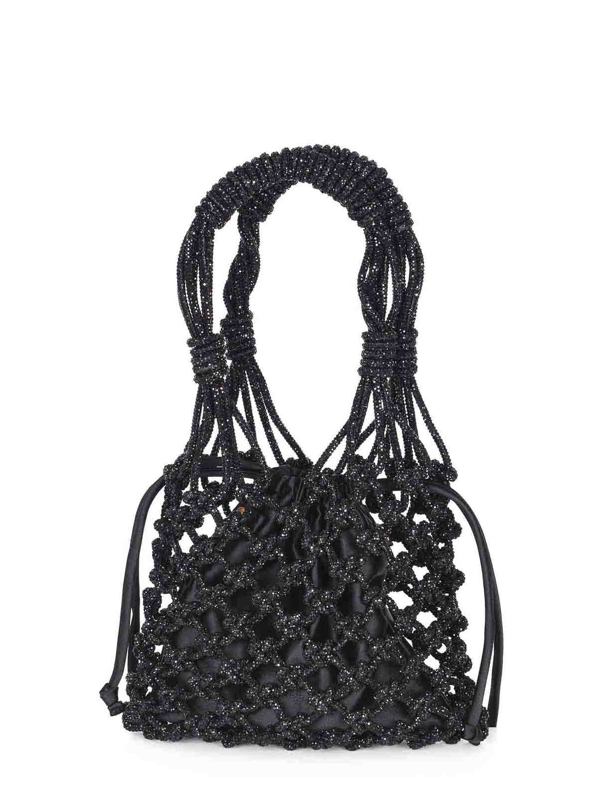 ブラックポリエステル製のPinkoミニクリスタルバッグ。バケットスタイル。トーン・オン・トーンのラインストーンで覆われたメッシュ。ダブルハンドル。ゴールドカラーのラブバードのロゴが入ったトーン・オン・トーンのインナー・サテン・ポーチ。ポリエステル100%。