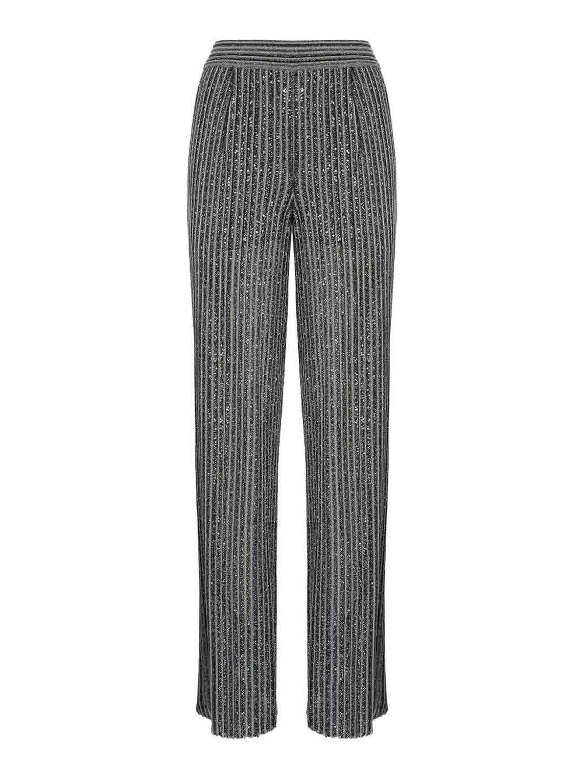 ダークグレースパンコール装飾、縦ストライプ、ストレートレッグ。お届けするアイテムは、写真のアイテムと若干異なる場合があります。これはすべてのミッソーニ製品の職人技によるものです。