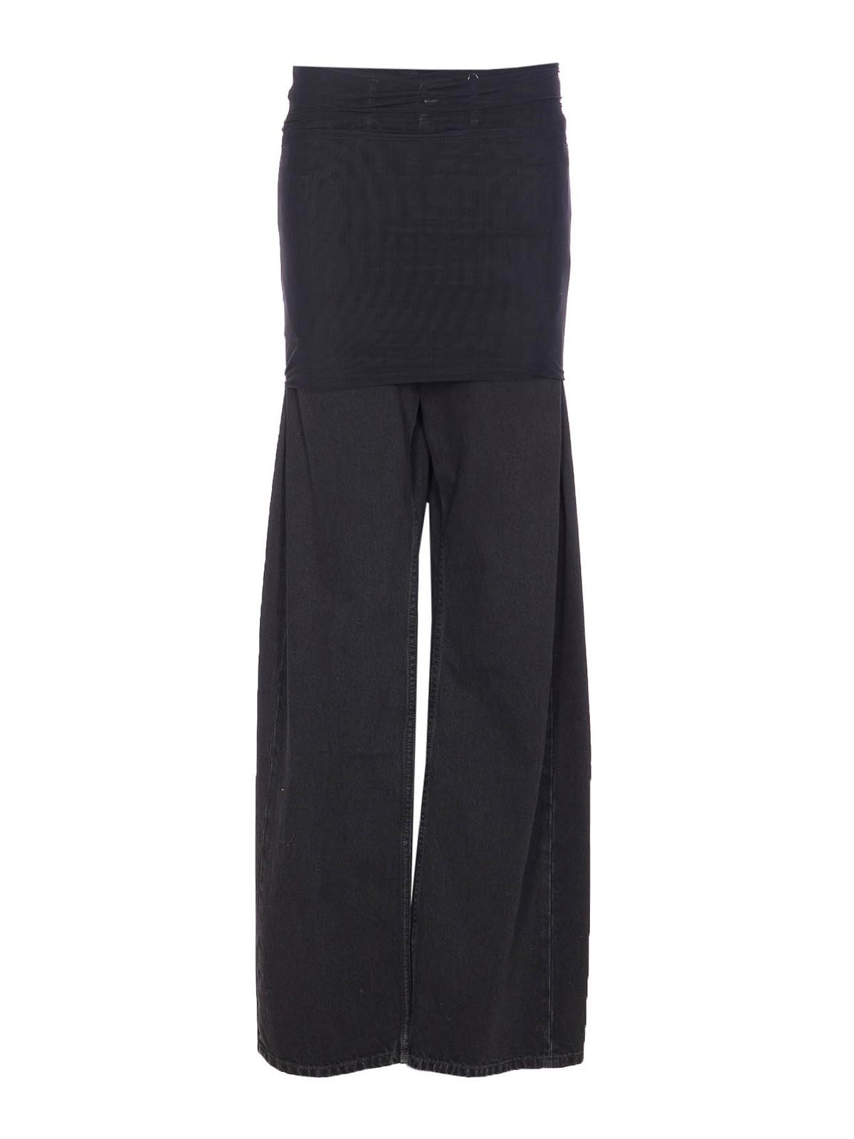 Mm6 maison margiela ブラックジーンズ、ファスナー&ボタン留め、レギュラーフィット、ウエストにレイヤーディテール