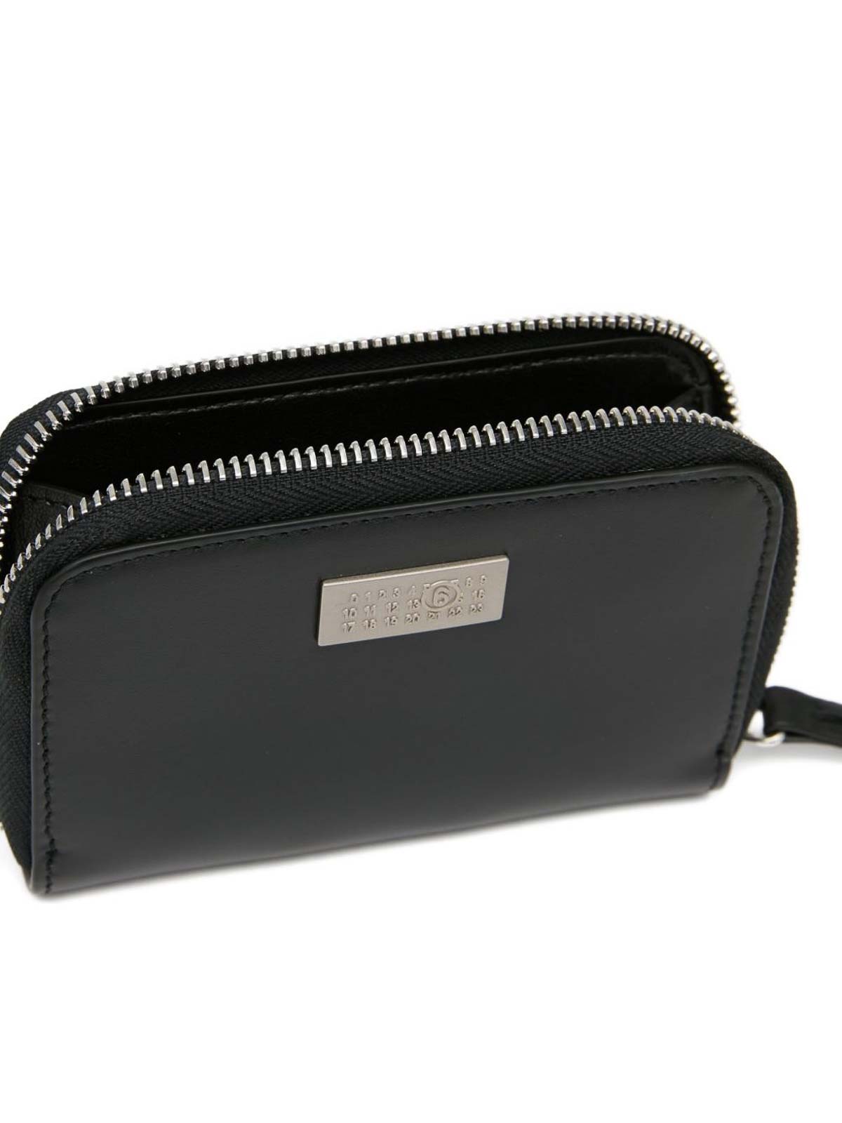 mm maison margielaのロゴとジッパー付きレザー製ブラックウォレット