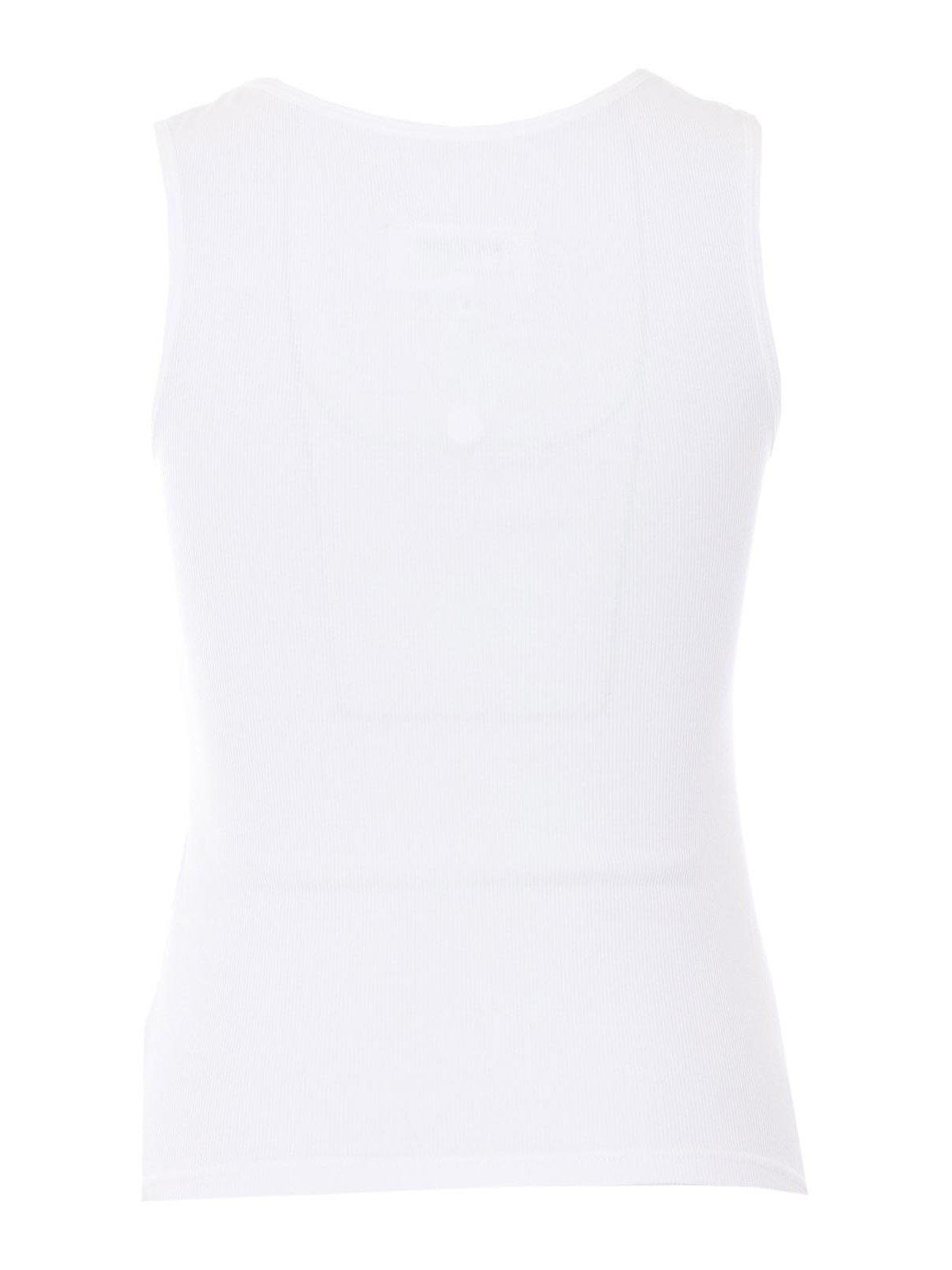 Mm6 メゾンマルジェラホワイトタンクトップ、クルーネック、ロングスリーブ、前面にパッチロゴ