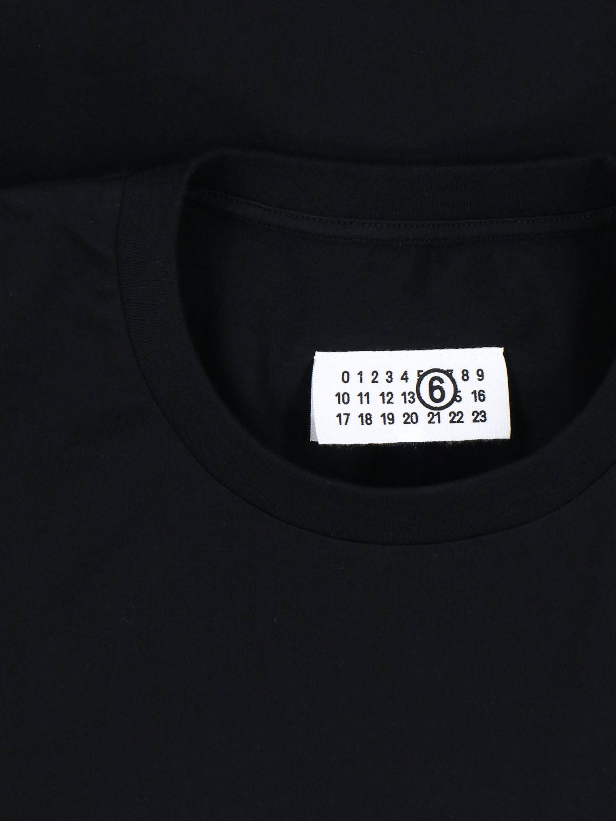 ブラックコットンのMM6 Maison Margielaアシンメトリックドレス、ライトシェード、クルーネック、ショートスリーブ、ドロップショルダー、アシンメトリーヘム。