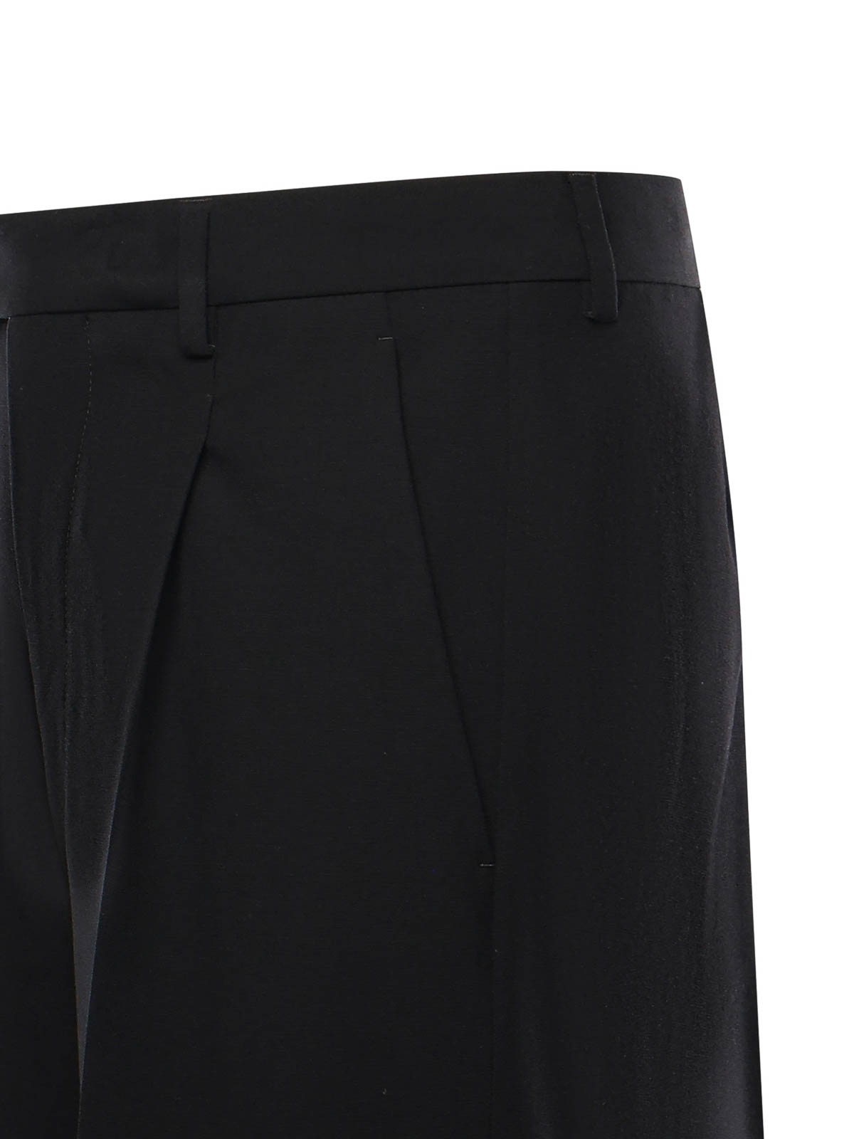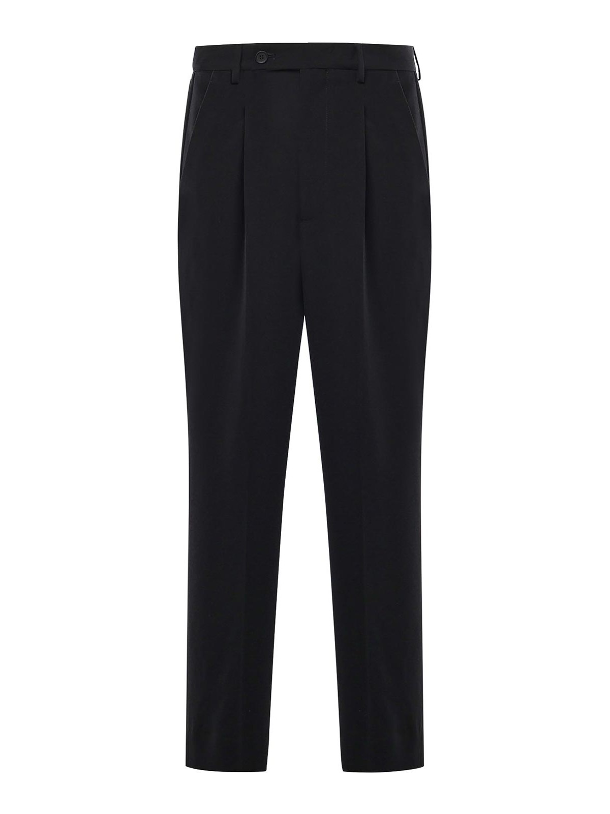 軽量ウール混紡製、フロントファスナーとボタン留め、ワイドレッグ、イタリア製、