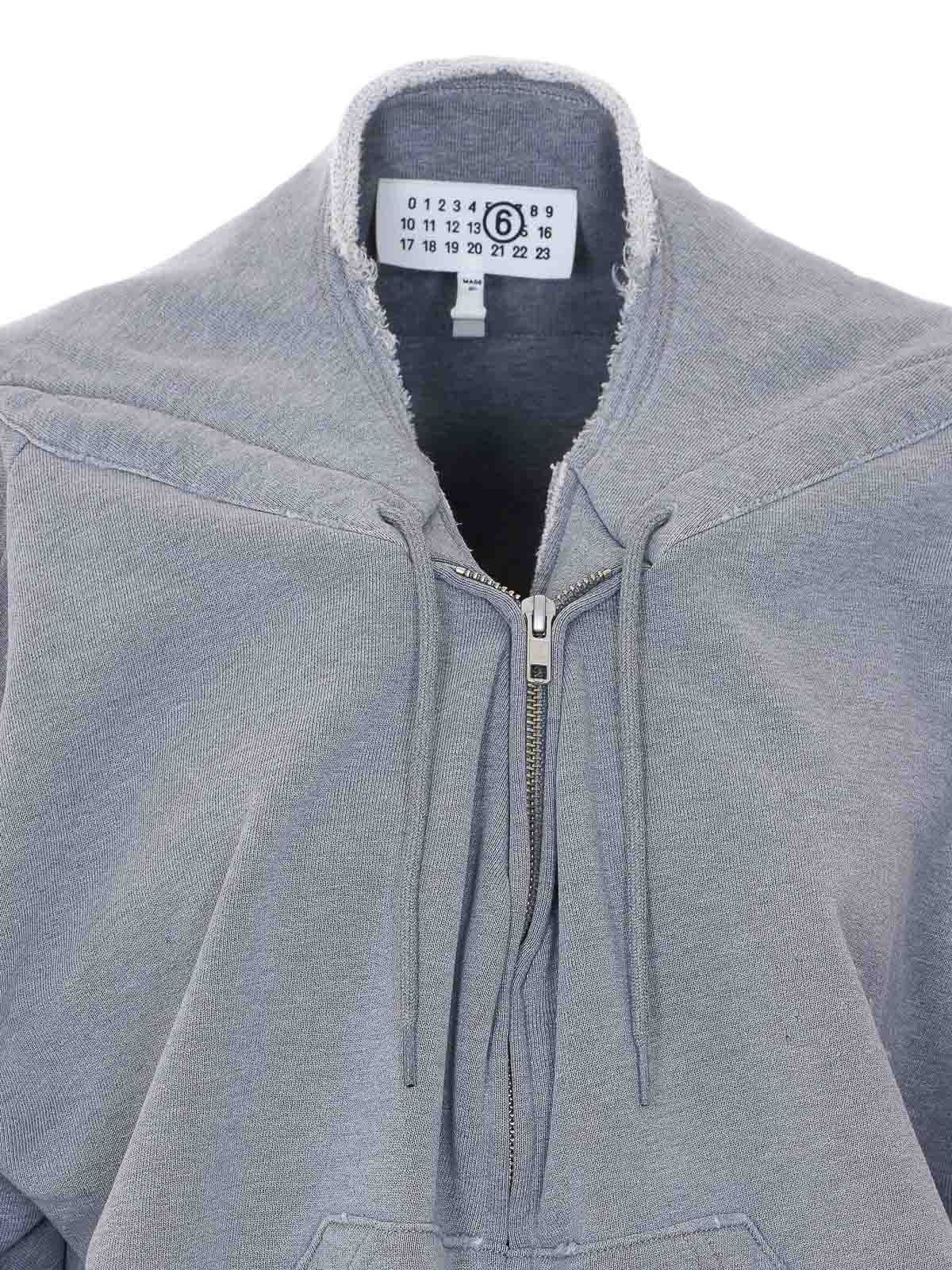 Mm6 maison margiela グレージップアップスウェットシャツ、クルーネック、ポケット、ユーズド&ディストレストエフェクト、クーリス