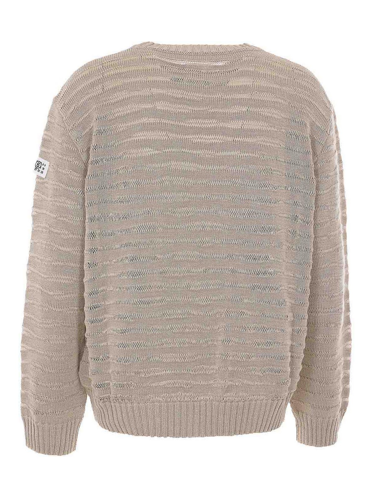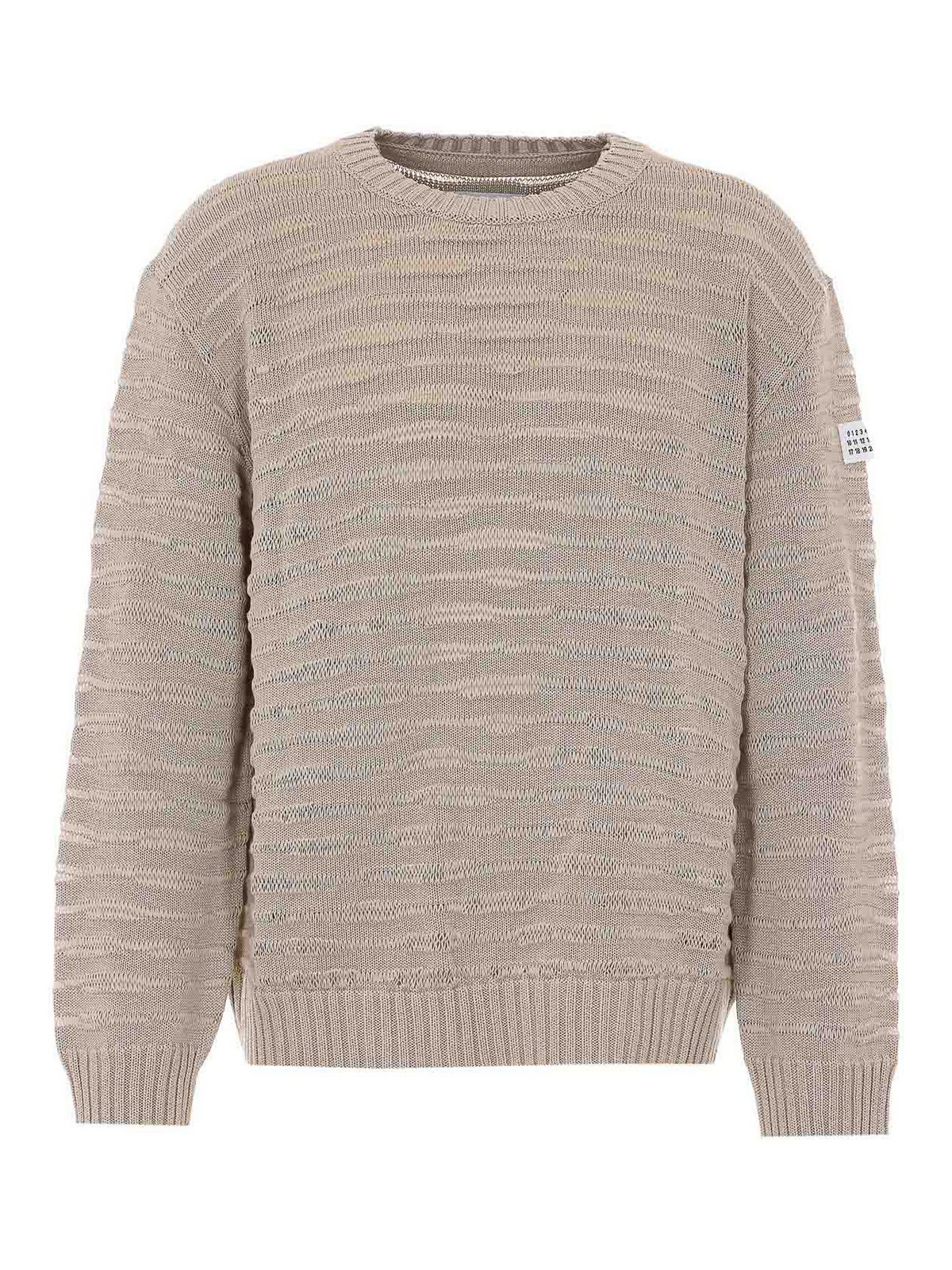 Mm6 メゾンマルジェラベージュディストレストセーター、クルーネック、ロングスリーブ