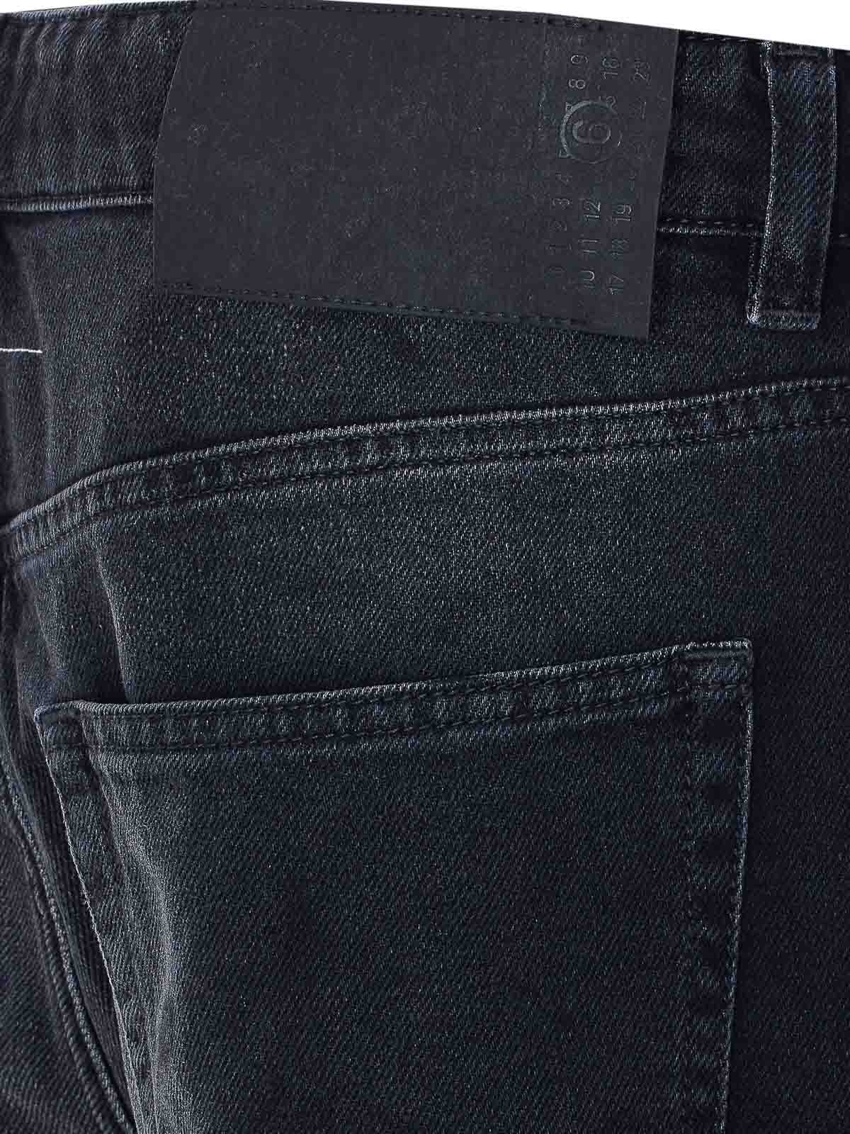 Mm6 maison margiela ブラックデニムショーツ、ボタン留め、ウエストにクーリス、ポケット5つ、ワイドレッグ、背面にパッチ