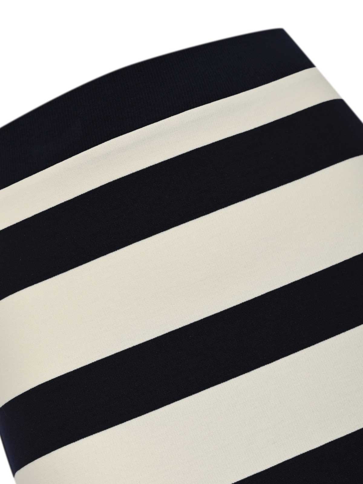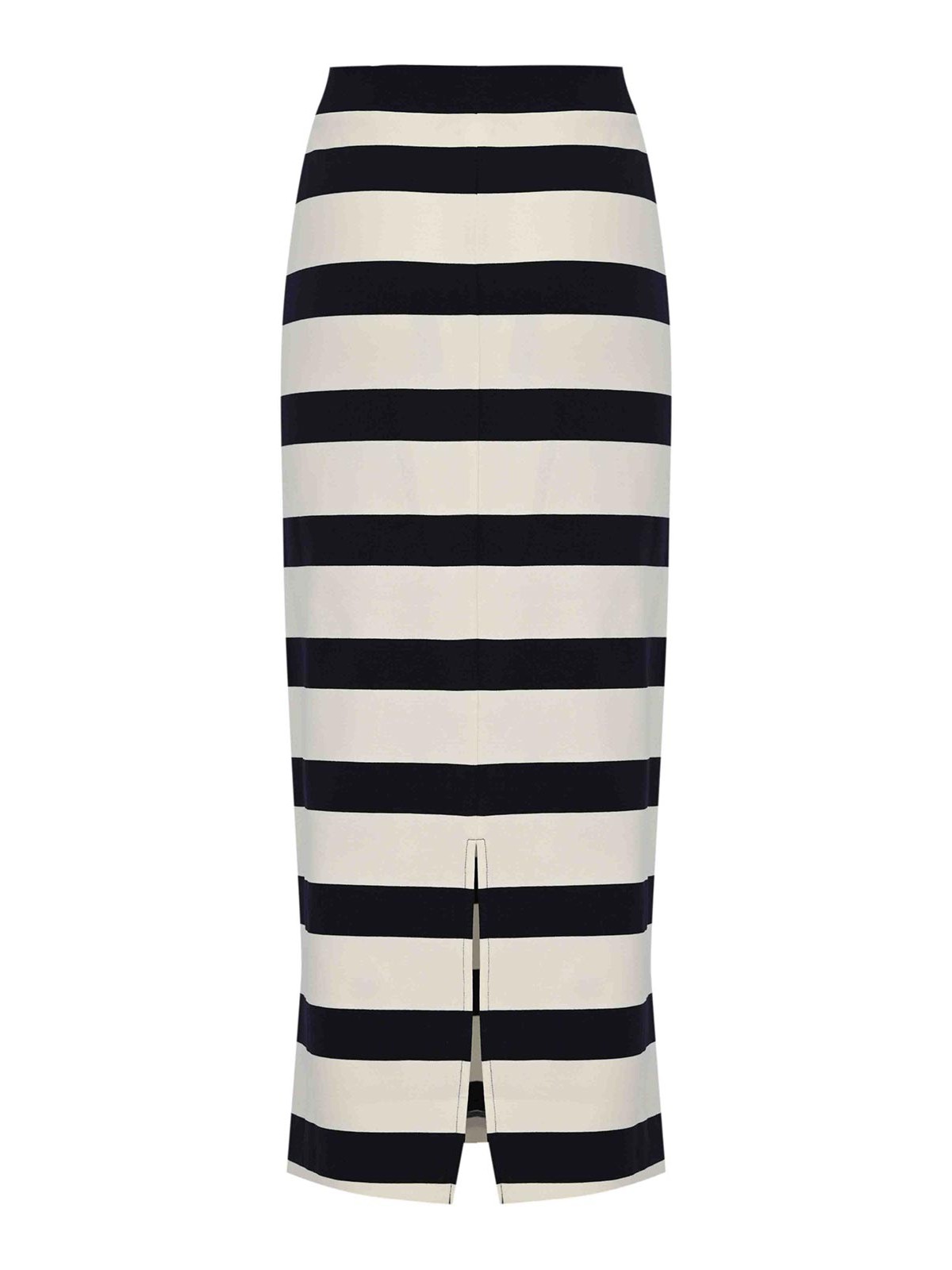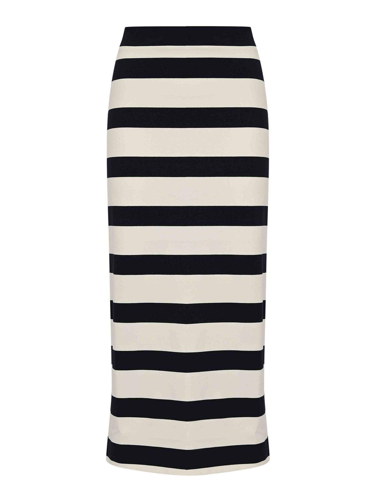 女性用ストライプビスコースニットミディスカート、mm max mara、mmlrivieraモデル、生地:ビスコースニット、パターン:水平ストライプ、ウエスト:伸縮性、クロージャー:クロージャーなし、ポケット:なし、長さ:ミディ、ディテール:動きやすい背中の中央スリット、裏地:いいえ、フィット:まっすぐで快適なラインでタイト