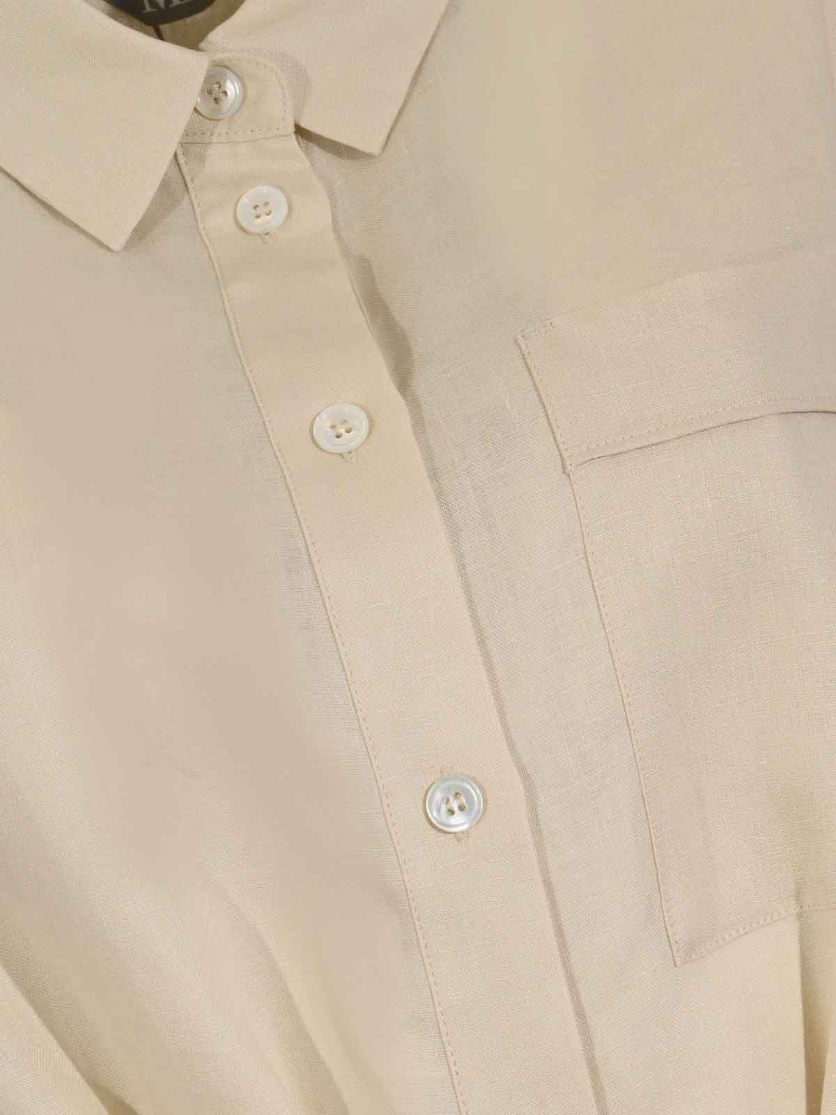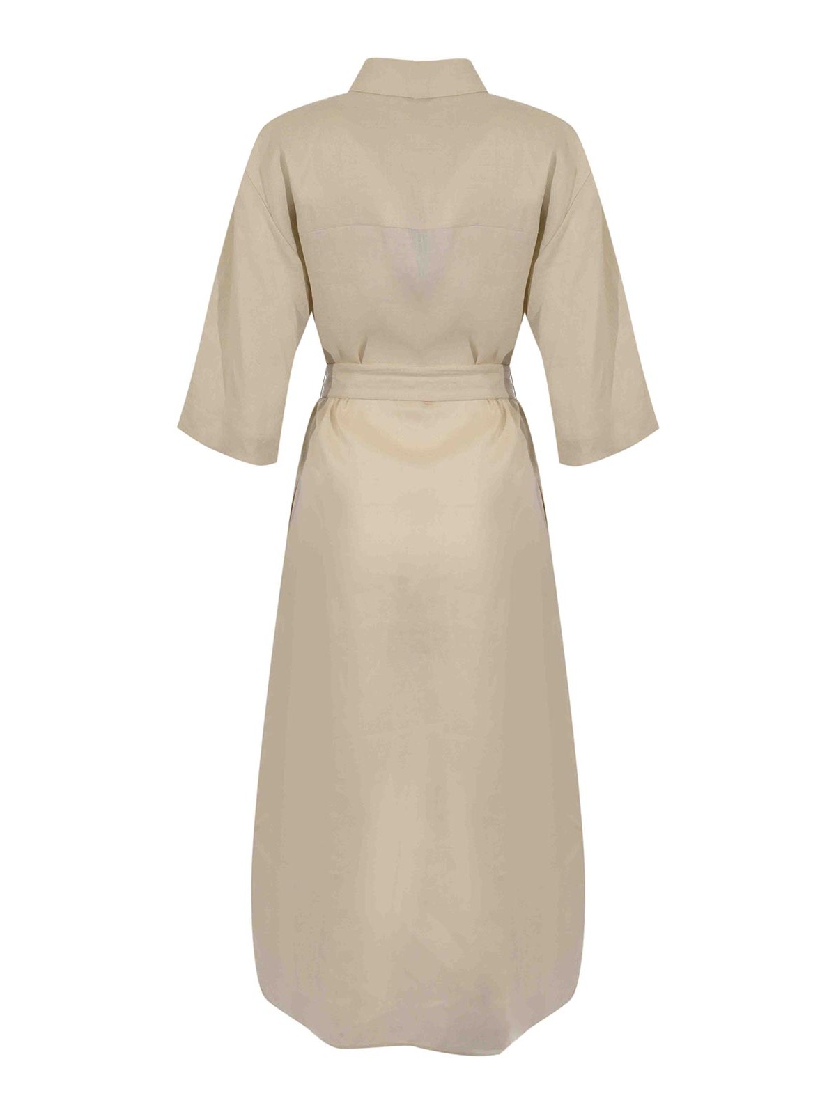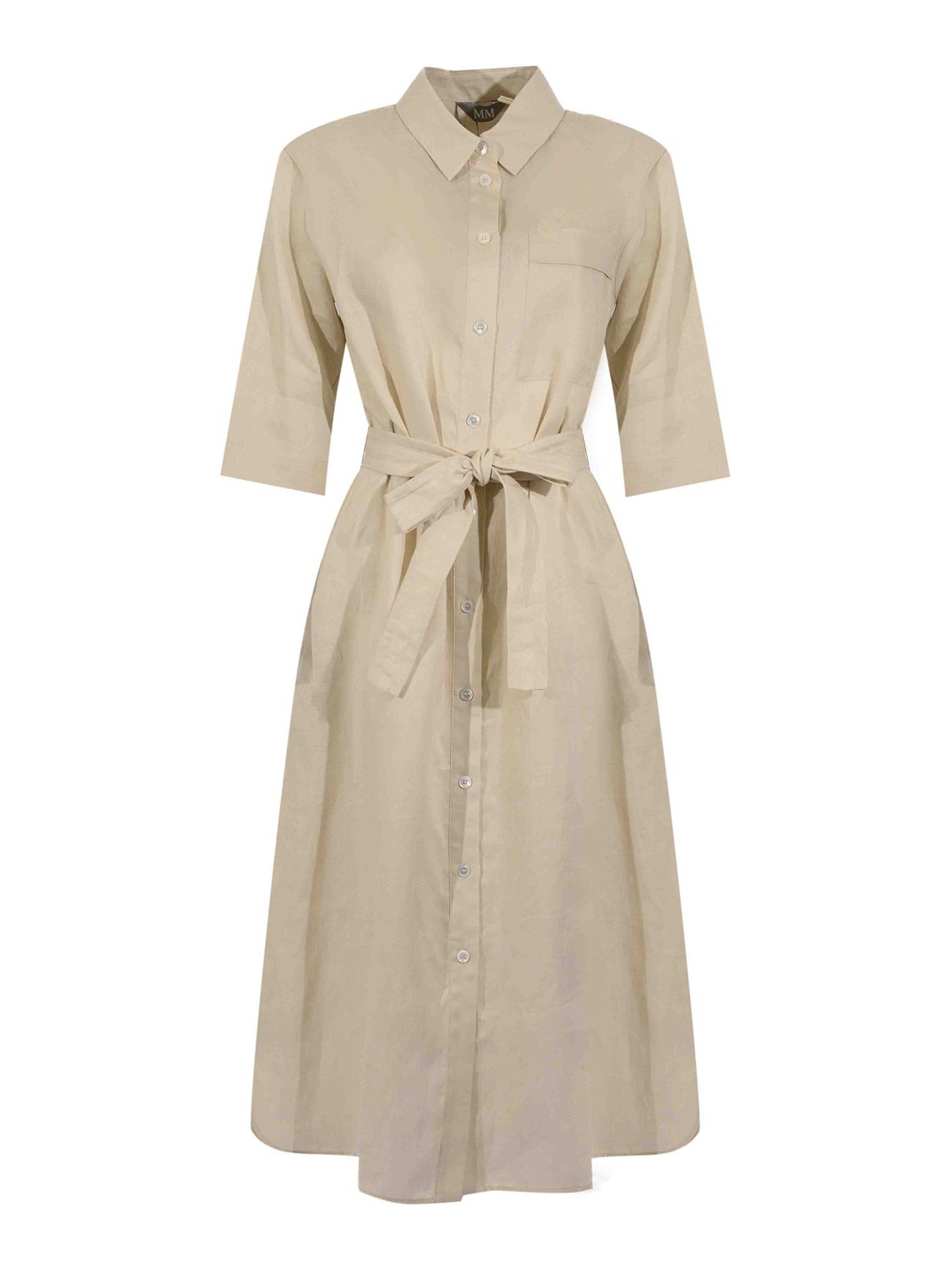 女性用リネンドレス、mm max mara、mmltabella モデル、生地:リネンキャンバス、パターン:無地、袖:ショート、襟:クラシックシャツ、クロージャー:フロントボタン、ポケット:胸ポケット、ディテール:マッチングウエストベルト、裏地:いいえ、フィット:レギュラー