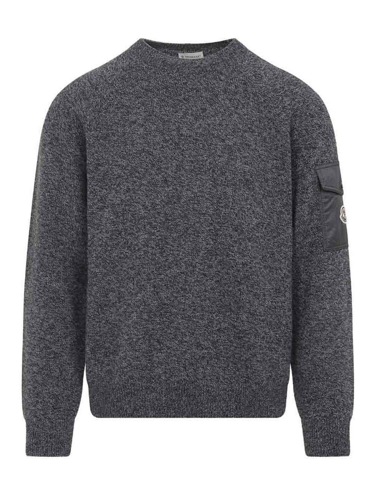 ブラック、ブレンドブランドロゴパッチクルーネック