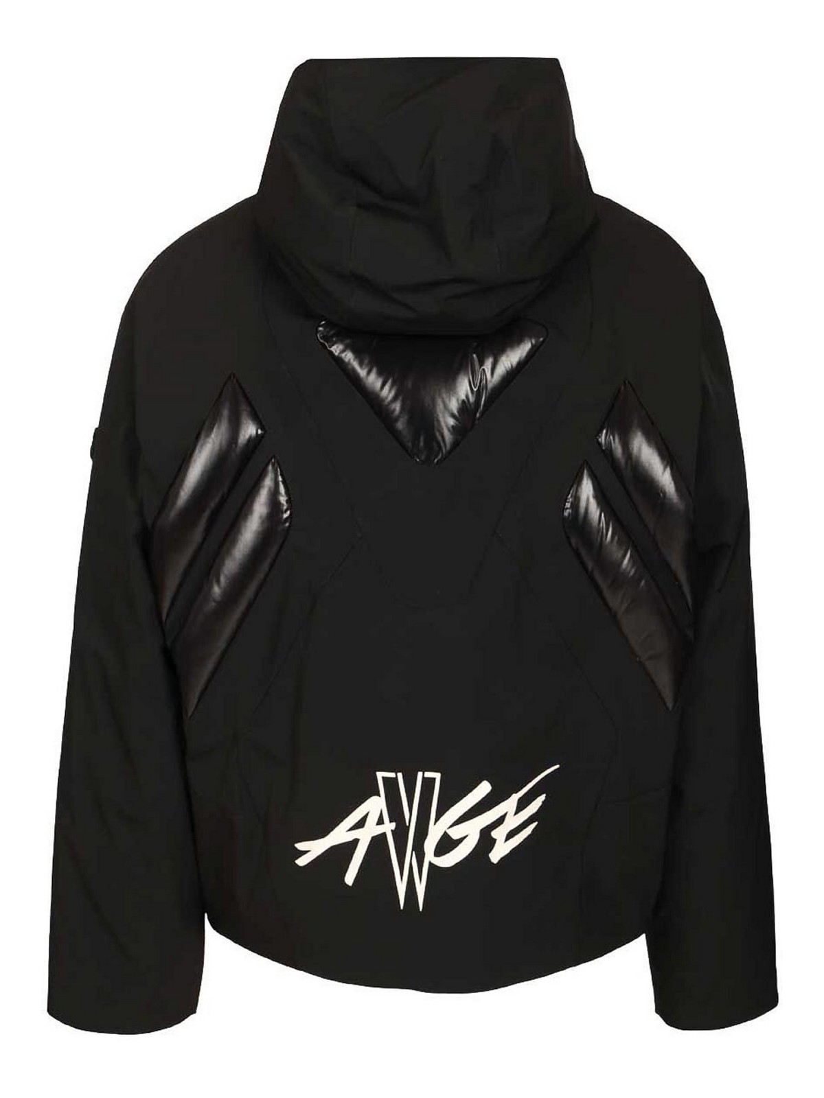 ストレッチブレンドのラクラクインレイを詰めたファスナーで調節可能な袖口にはドローストリングヘムロゴプリントロゴパッチ。モンクレールジーニアスコレクション。