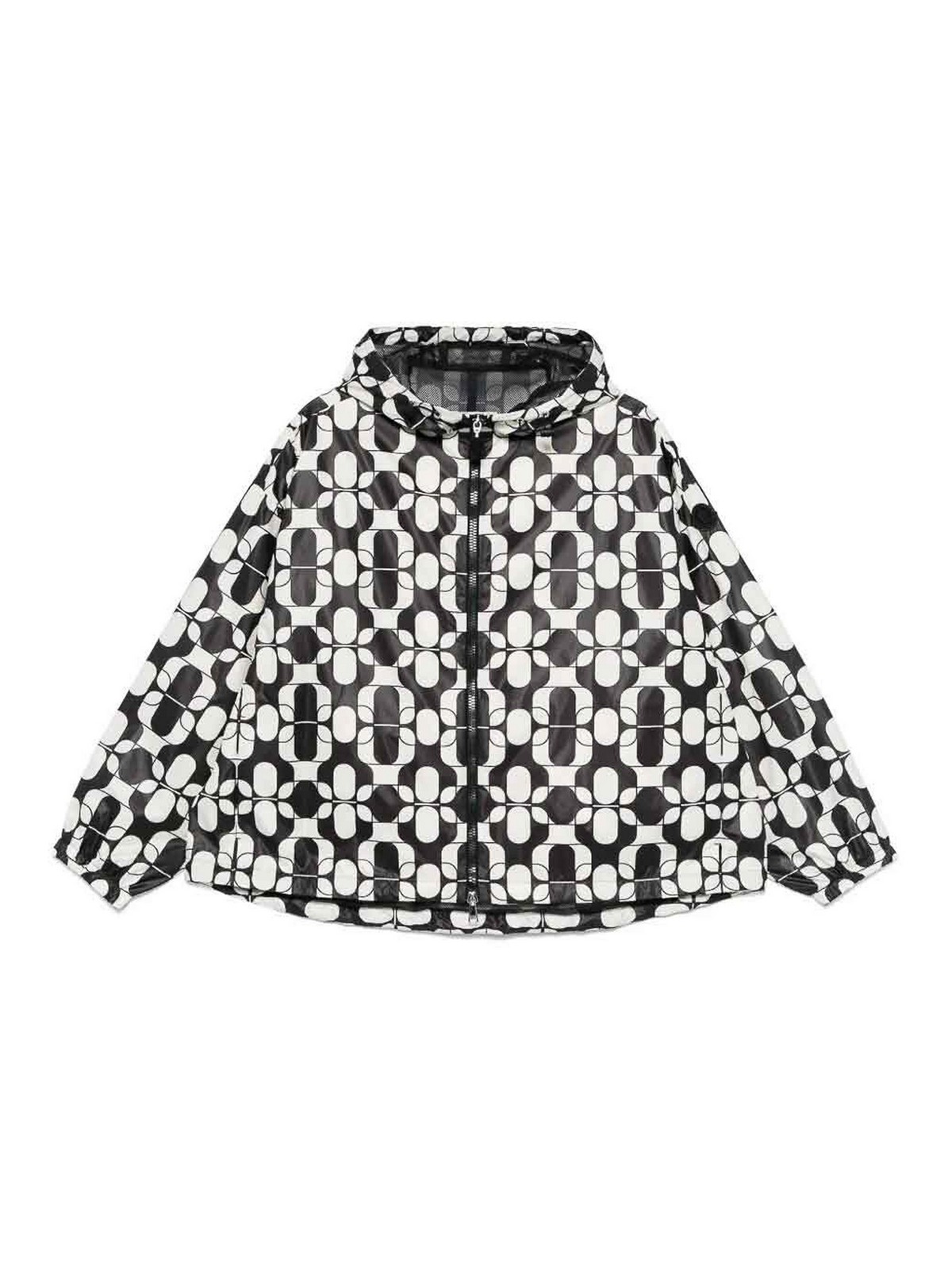 ブラック、2ウェイジッパー付きフロントクロージャー、ドローストリング付きフード、インサートサイドポケット2つ、ロングスリーブ