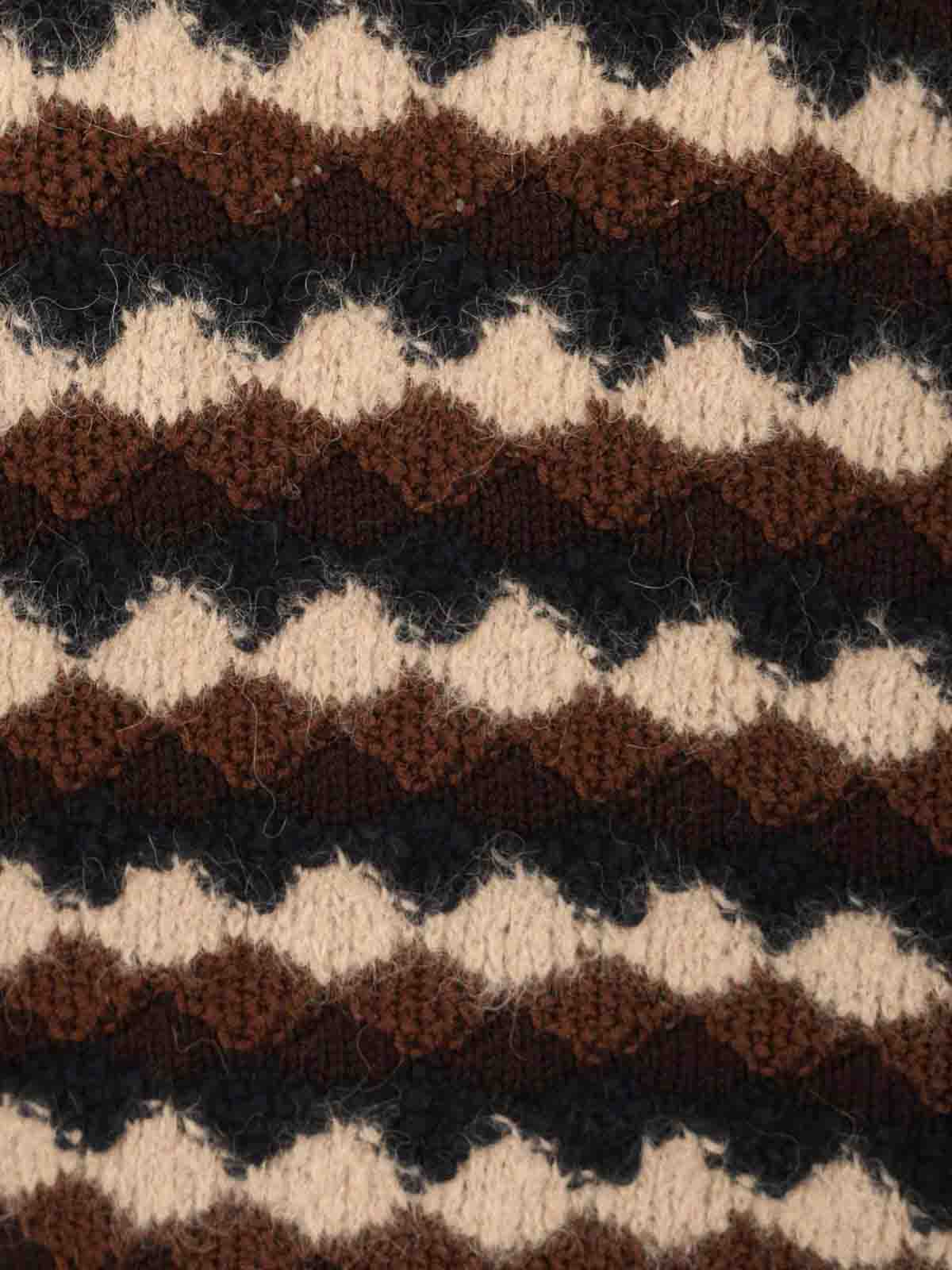 袖に幾何学的なロゴモチーフが刺繍されたクルーネックセーター