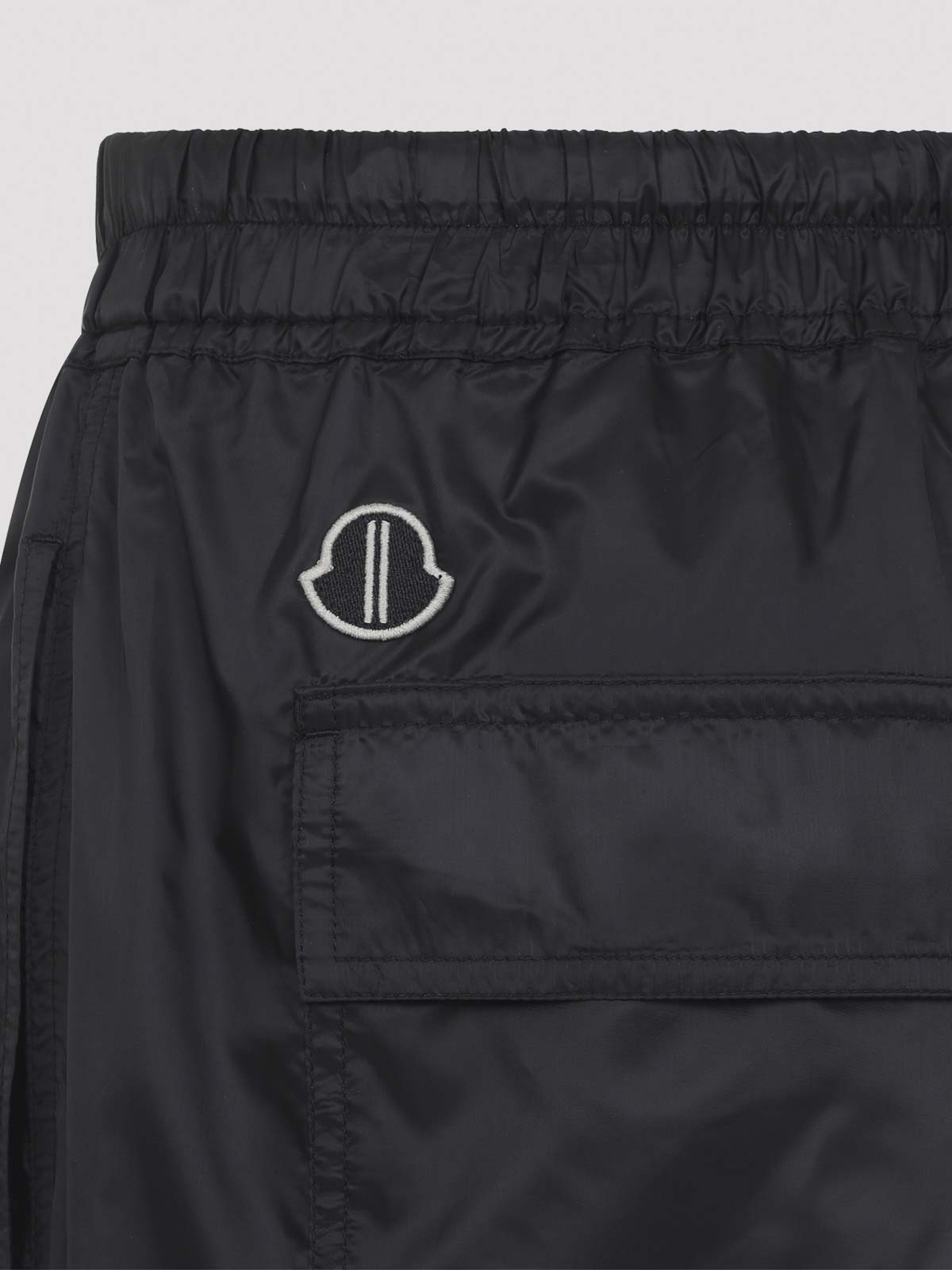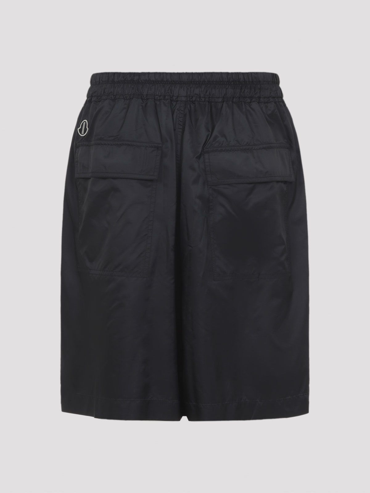 Moncler x rick owens ブラックキルトショーツ。ブラックリサイクル超軽量ポリエステル、膝丈でレギュラーフィット。ドローストリング付きの伸縮性ウエストバンド、フロントキルトフラップ。サイドシームポケット、フラップ付きバックパッチポケット、ホーン4ホールボタンクロージャー。左バックヒップにはモンクレール+リックオウエンスの刺繍ロゴパッチ。