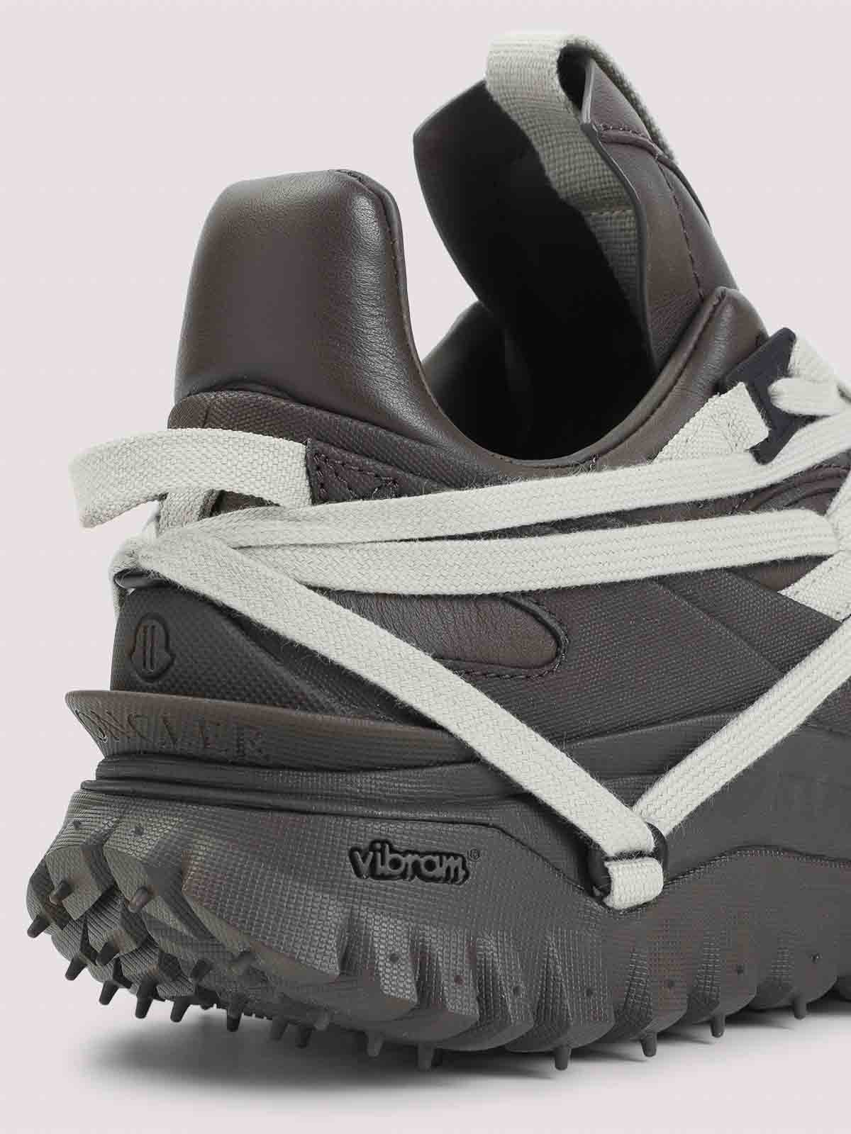 Moncler x rick owens ダークダストトレイルグリップメガレース。メッシュの裏地が付いたダークダストのアンクルアンダーハイレザースニーカー。突き出たクッション入りのバック、重なり合うパネル、ウェビングのディテールをあしらった斜めのタン。フロントには五芒星形のシグネチャーメガレースのディテール。TPUスポイラー、EVAミッドソール、柔軟性と軽さ、特別なビブラムを実現メガグリップラバーコンパウンドトレッド、トラクションと耐久性を高める歯付きグリップ、オーソライトインソール。ソールの高さは4.5cmです。