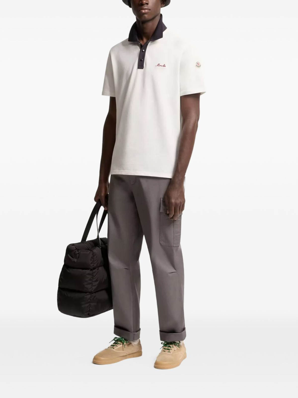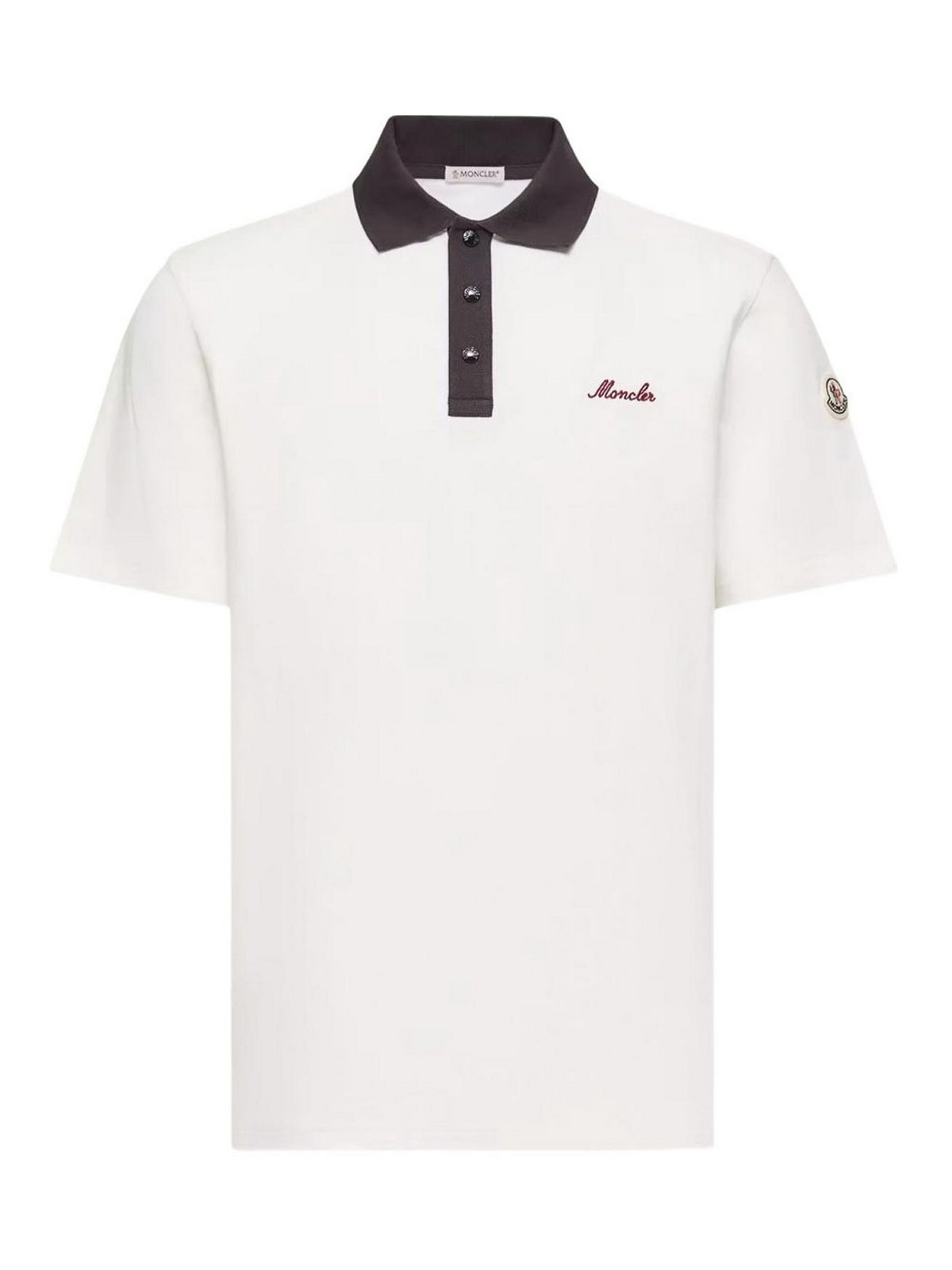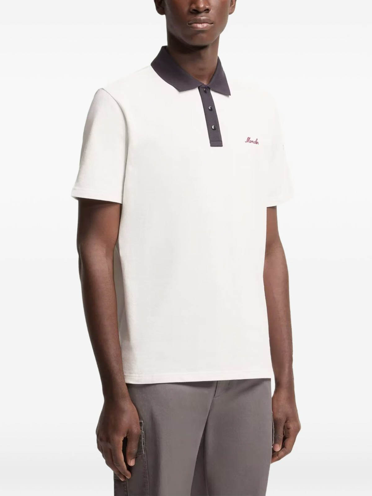 moncler のコントラストカラーの白いコットンポロシャツ