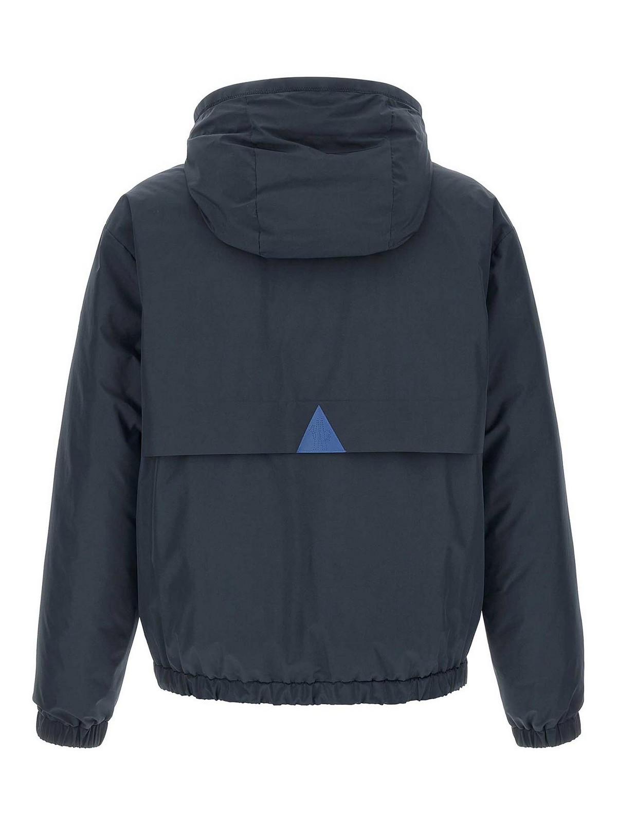 Bergunsのリバーシブルジャケット。2.5Lの撥水加工テクニカルコットンポプリンとキルト加工のマイクロリップストップ、グースダウンパッド付き。調節可能なフード、ロゴプリント、フロントジッパー、ポケット、伸縮性のある袖口とロゴパッチアップリケ付きの長袖、裾にドローストリング付き。