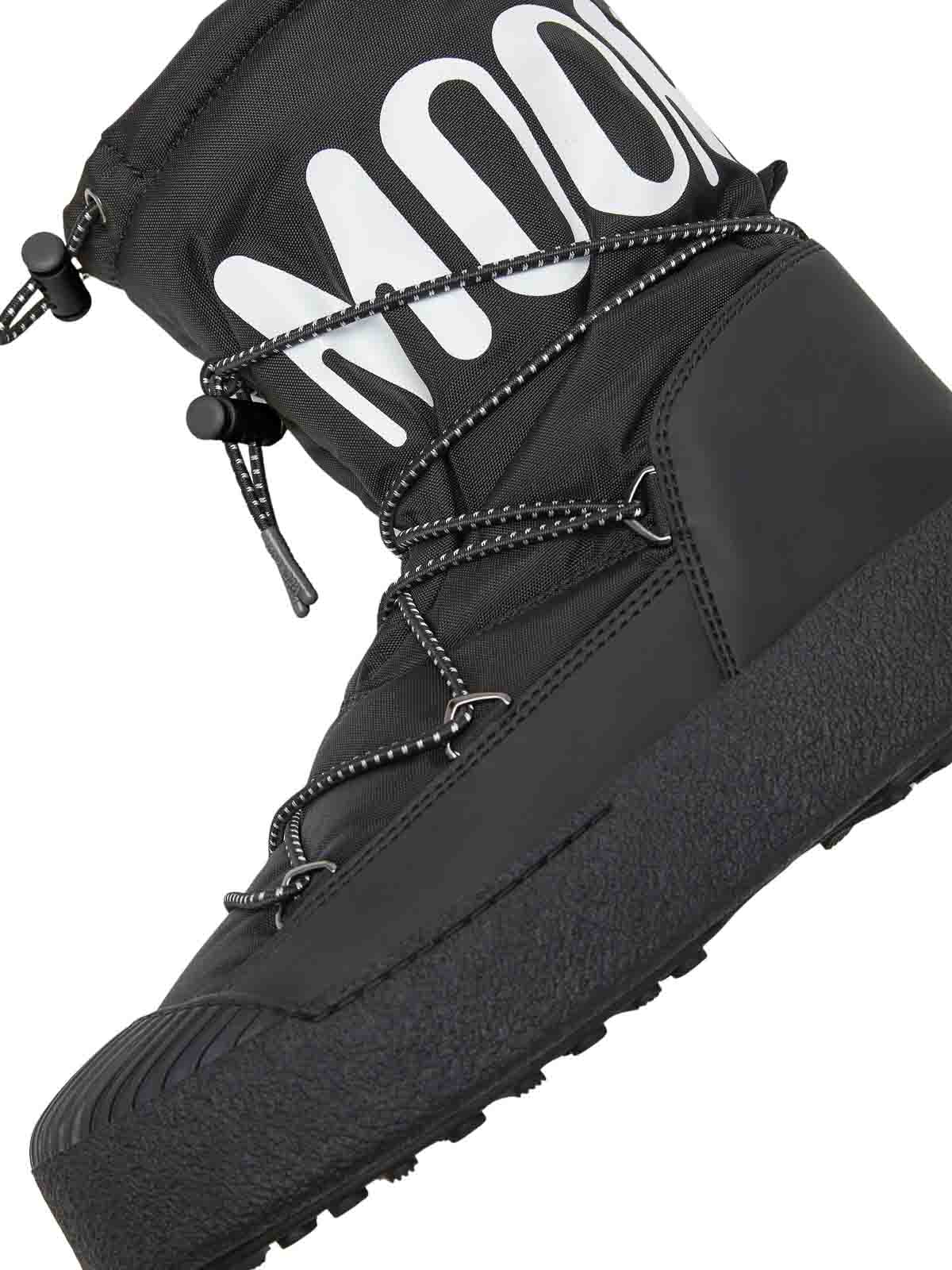 トレッキングの美学と都会の革新性を融合させたムーンブーツは、スタイルと機能性を兼ね備え、冬を迎えるのに理想的です。ナイロンとポリ塩化ビニル製で、撥水膜と密閉された縫い目のおかげでしっかり保護し、最も過酷な条件下でも足をドライに保ちます。ノンスリップトレッド付きの熱可塑性ラバーソールはどんな表面でもしっかりと握ることができ、調節可能なレースとドローストリングが付いたスリップオンデザインにより、素早く自分に合ったフィット感が得られます。ブラックカラーは汎用性と都会的な雰囲気を醸し出しており、このブーツはマウンテンハイキングにも街歩きにも適しています。