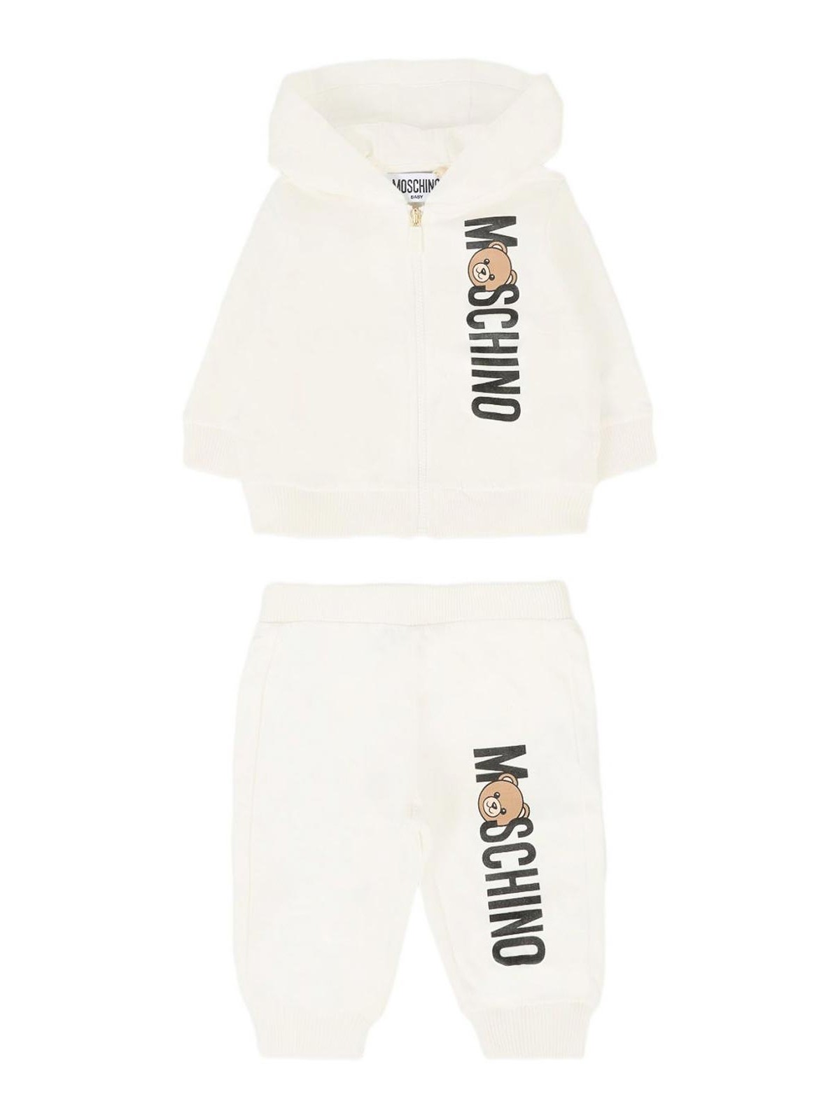 オフホワイトロゴプリントフード付きトップジップカフ付きトラウザーズリブトリム