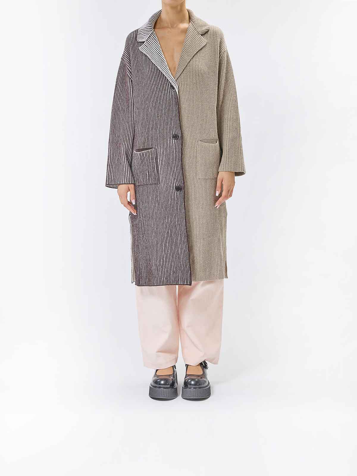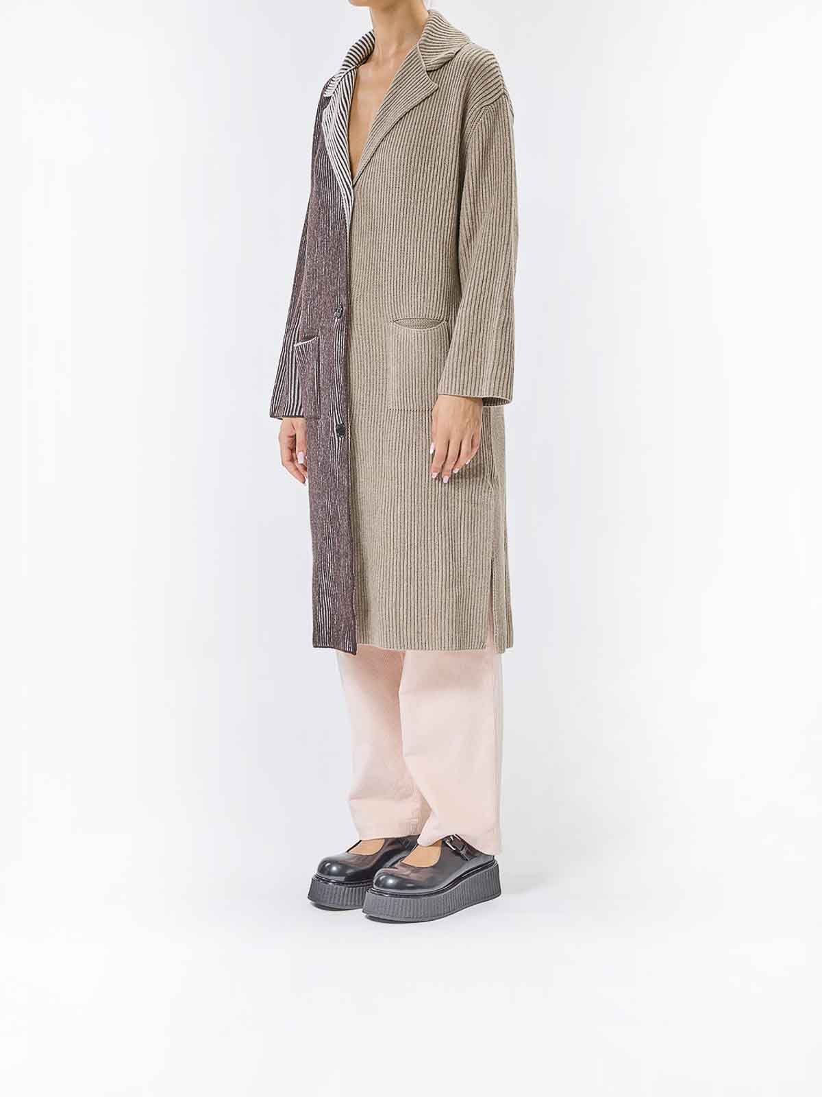 ロゴのロングカーディガン。カラーはブラウン。Moschinoのロングニットウールカーディガン。ツートンカラーのパターンと背面のインターシャロゴが特徴です。ニット、ラペルカラー、フロントボタンクロージャー、フロントパッチポケット2つ、バックにインターシャロゴ。カラー:ブラウン。ウール 40%、ビスコース 25%、ポリアミド 25%、カシミア 10%。