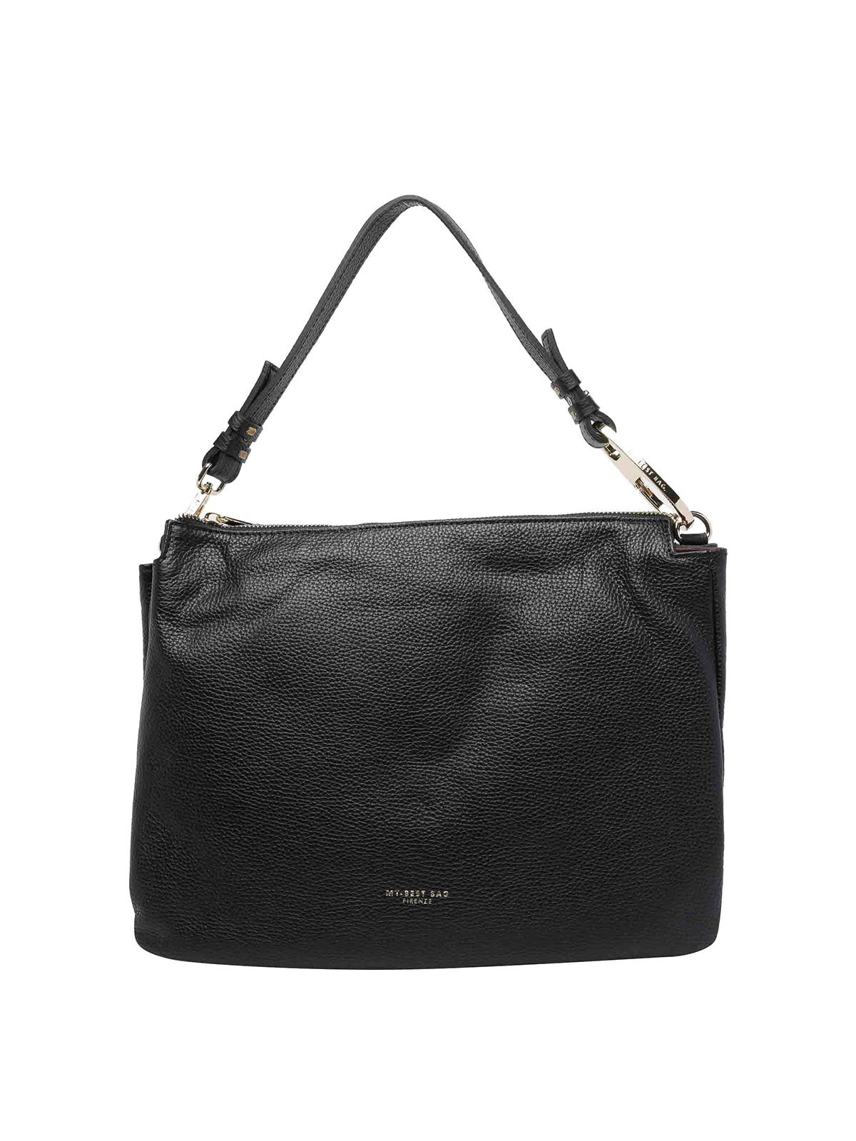My best bag Firenze ブラックショルダーバッグ、ファスナー開閉、3セクション、取り外し可能なショルダーストラップ、調節可能で取り外し可能なストラップ、レザーモデル