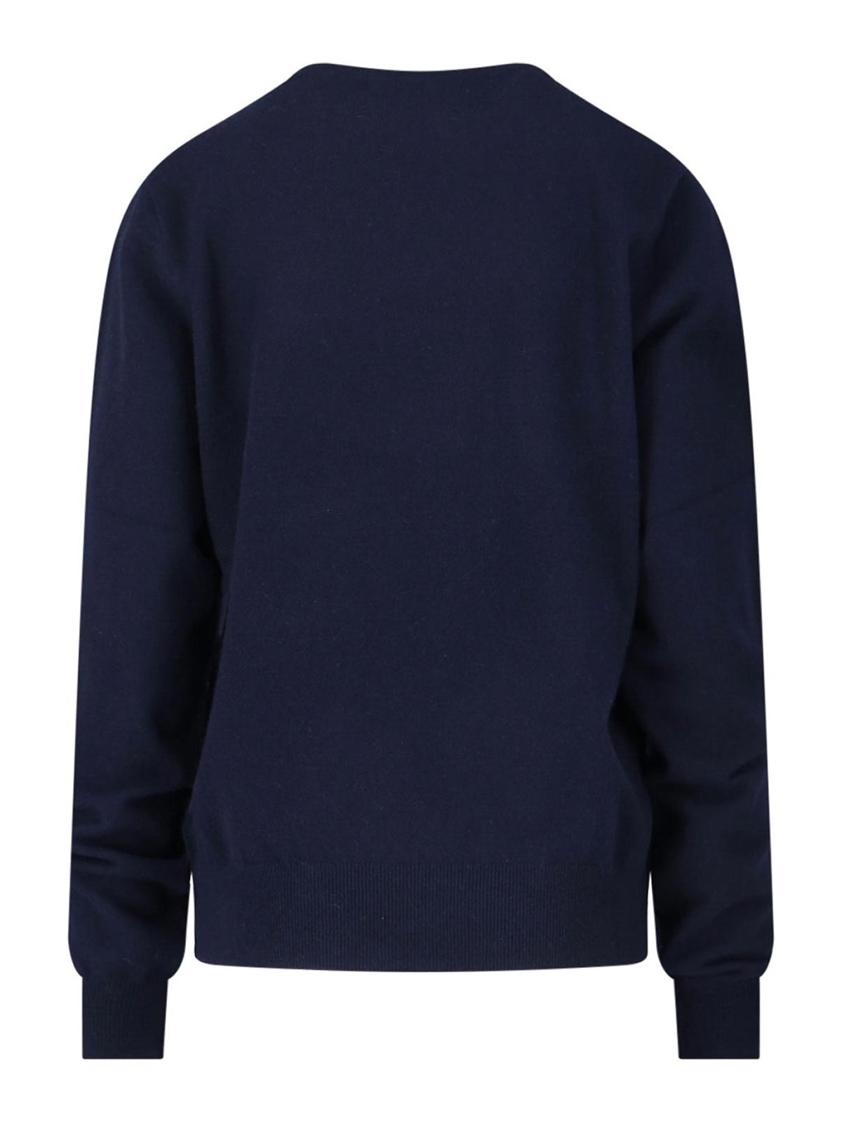 n 36 be クラシックエクストリームカシミアセーター、ブルーカシミア、ネイビートーン、リブ編みのクルーネック、長袖、袖にマルチカラーのロゴパッチ、リブ仕上げ、ストレートヘム。