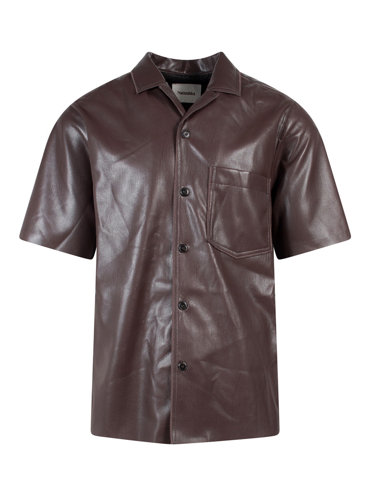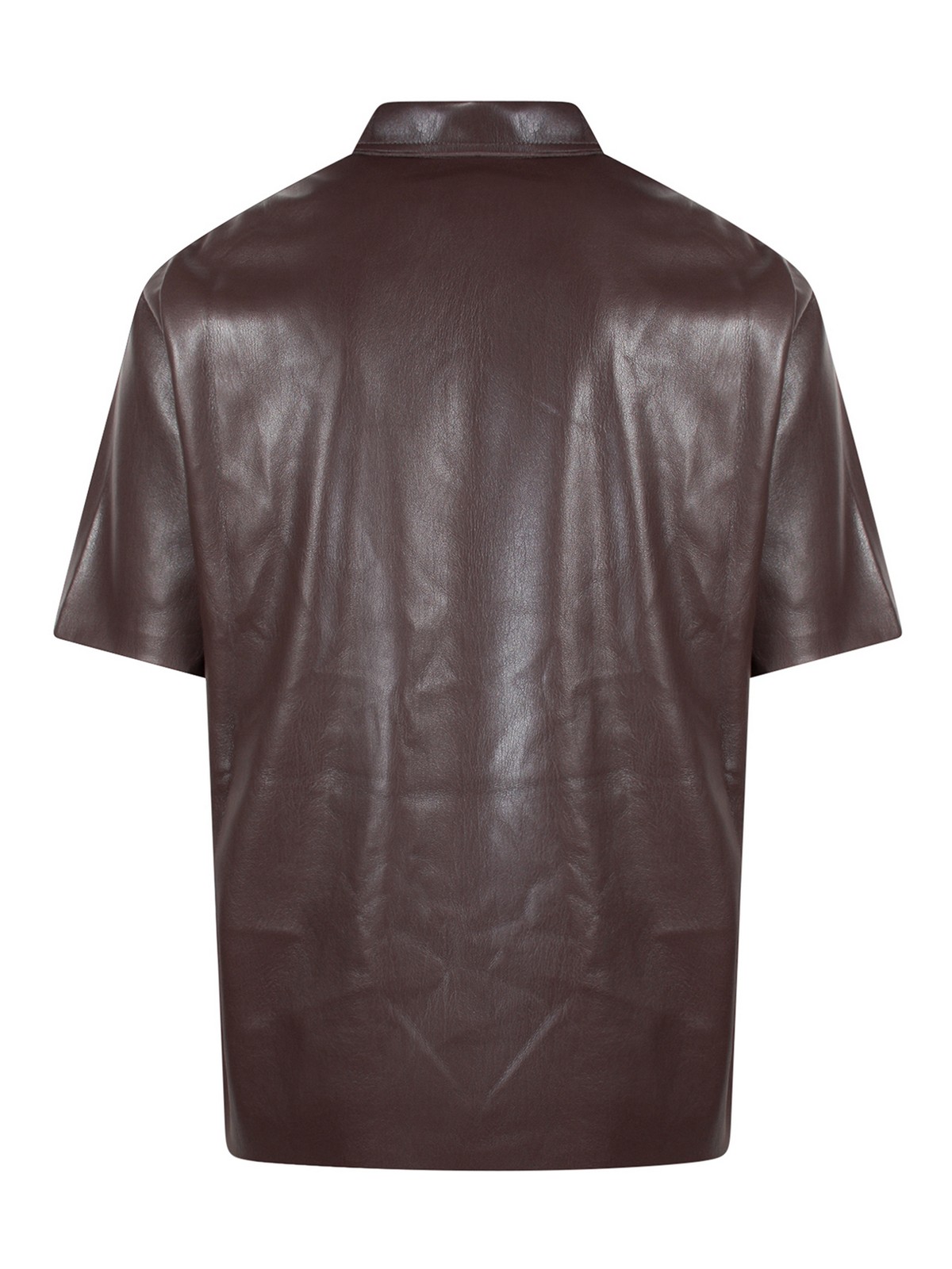 ボタン付きセントラルクロージャー、ステッチ付きの先のとがった襟、半袖、裏地なし。