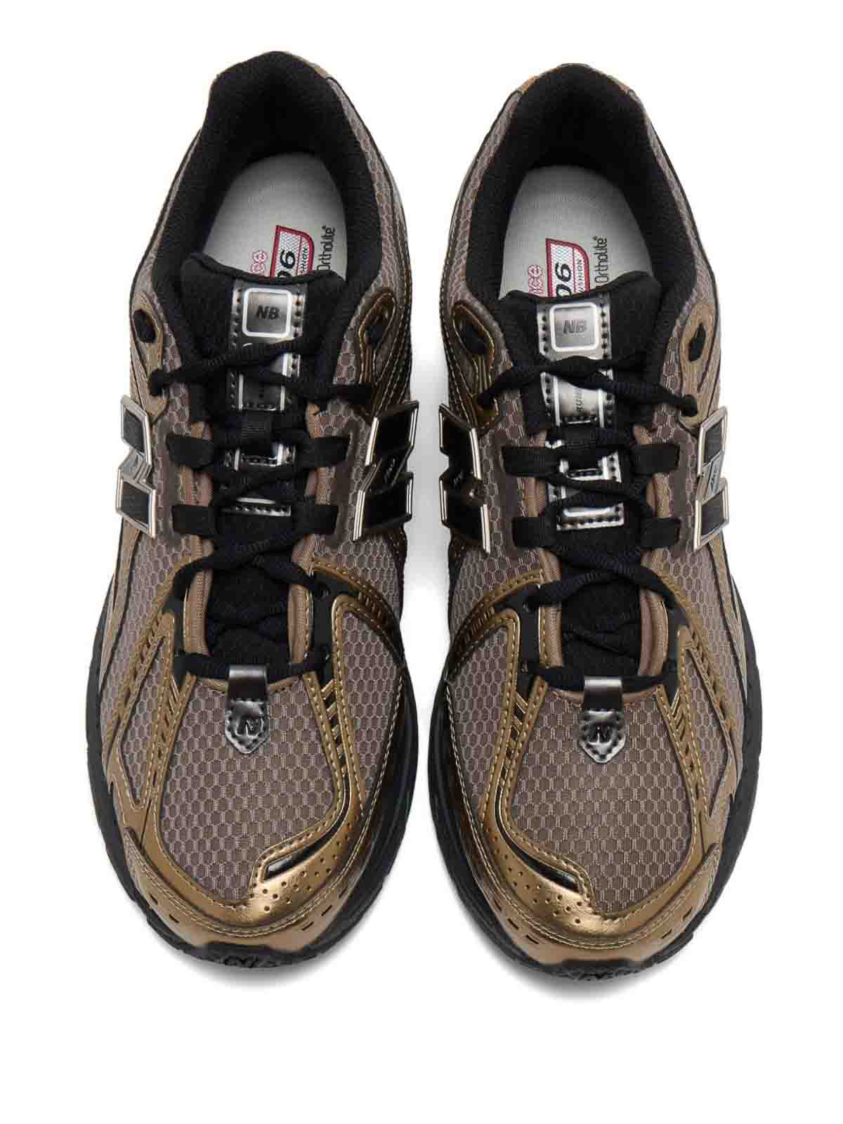 ブラックメッシュアッパーメタリックディテールレースアップファスニングスカルプテッドミッドソールラバーアウトソール
