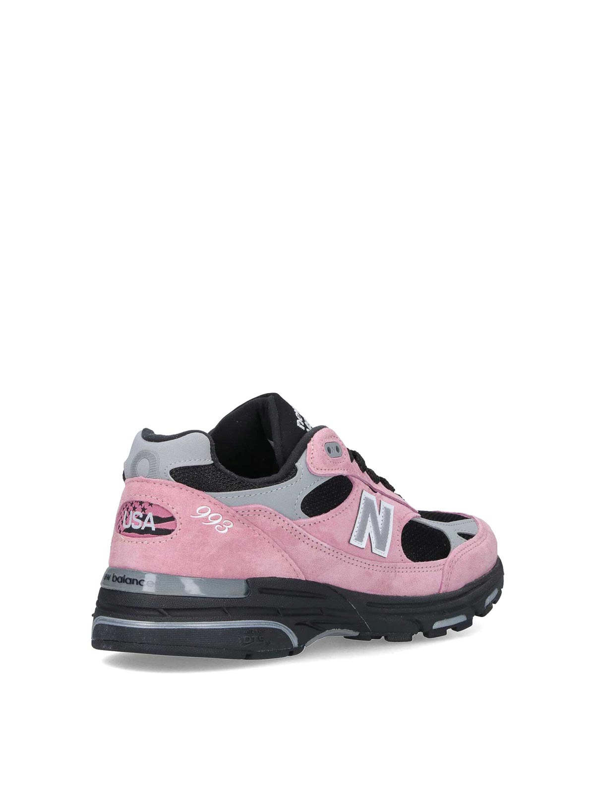 ニューバランス 993 メイド・イン・イングランドスニーカー、ピンクスエード、ラウンドトウ、レースクロージャー、コントラストの効いたディテール、コントラストカラーのサイドロゴパッチ、ラバーソール。