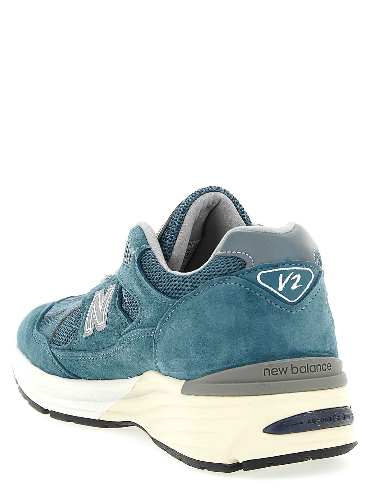 スエードとメッシュ生地を使用した英国製991v2'スニーカー、レースアップクロージャー、ラバーソール付き。
